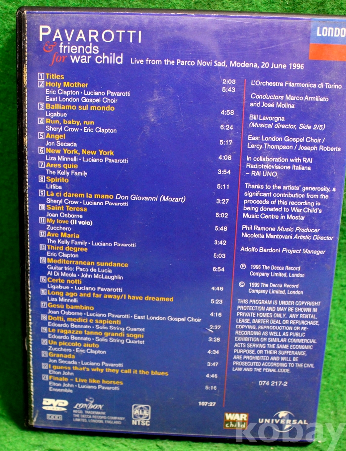 (영국제작 DVD) Pavarotti & Friends for War child - Holy mother / Angel / Area quie...