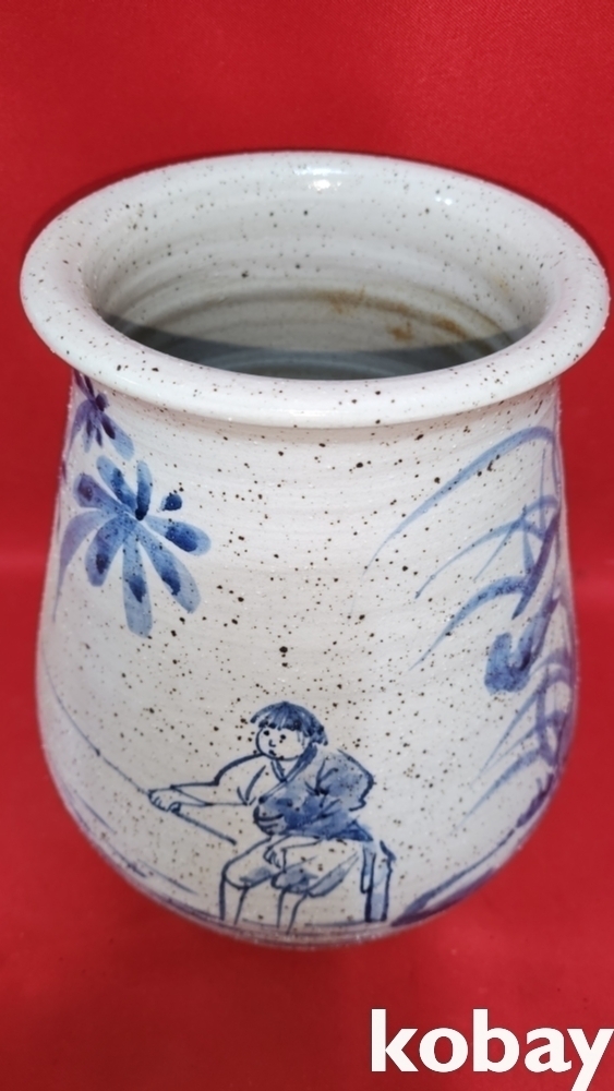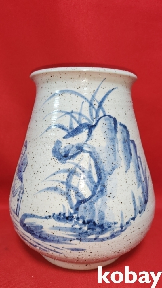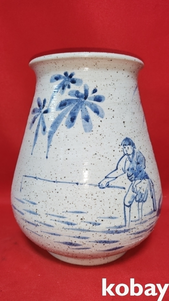 장작가마로 청화백자 낚시하는 인물문 광구병입니다,