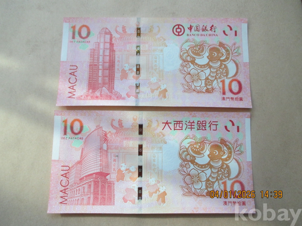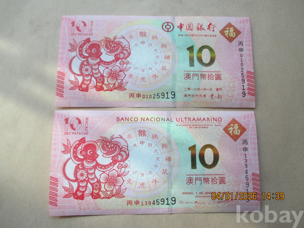 마카우원숭의해2장세트 2015년 10파타카중국은행