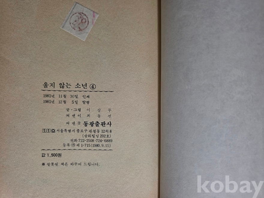 완결발행했던 울지않는 소년 초판본입니다.
