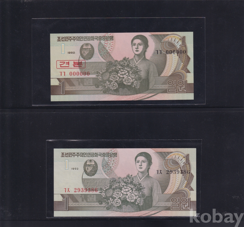- 윗동네 1992년 일원 000 견본 / 일원 통용권 미사용 지폐 - 2장 일괄