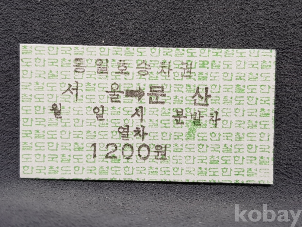 - 미사용 통일호 승차권 " 서울 ▶ 문산 " 1200원
