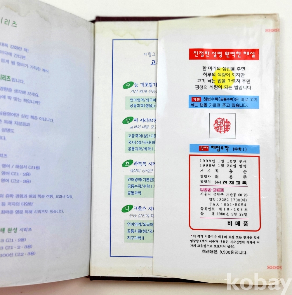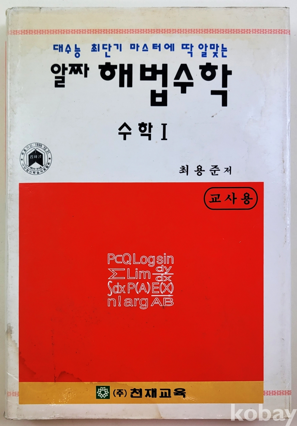 물 품 명 | 알짜 해법수학(교사용) : 수학(1) / 총1권 / 최용준 / 1998년 초판 / 천재교육 |