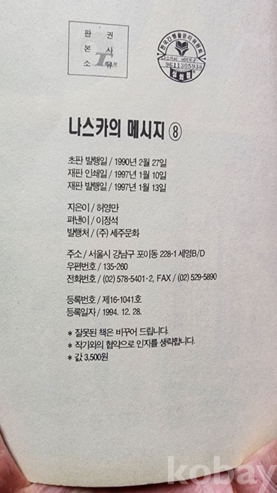 나스카의 메세지 1~8 완결, 허영만 그림, 팀매니아, 1997년