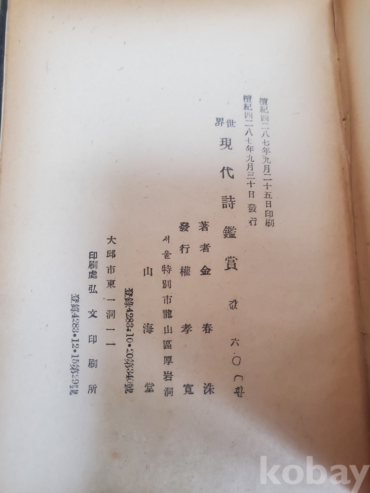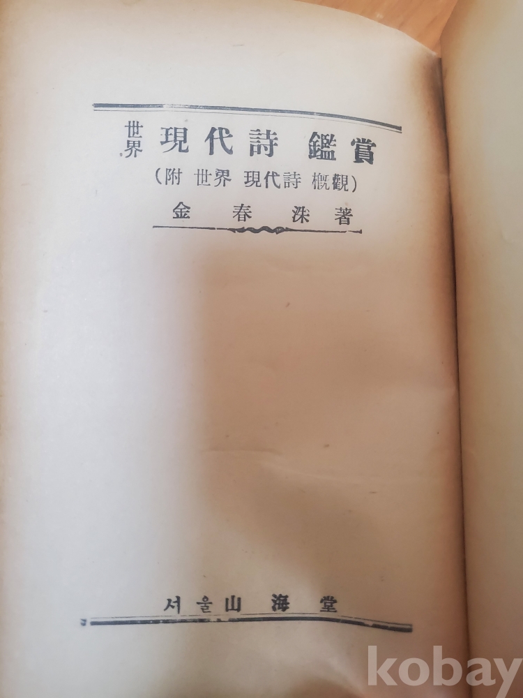 1. 세계 현대시감상, 김춘수, 산해당, 1954년, 306쪽, 상태 상, 사진 참조