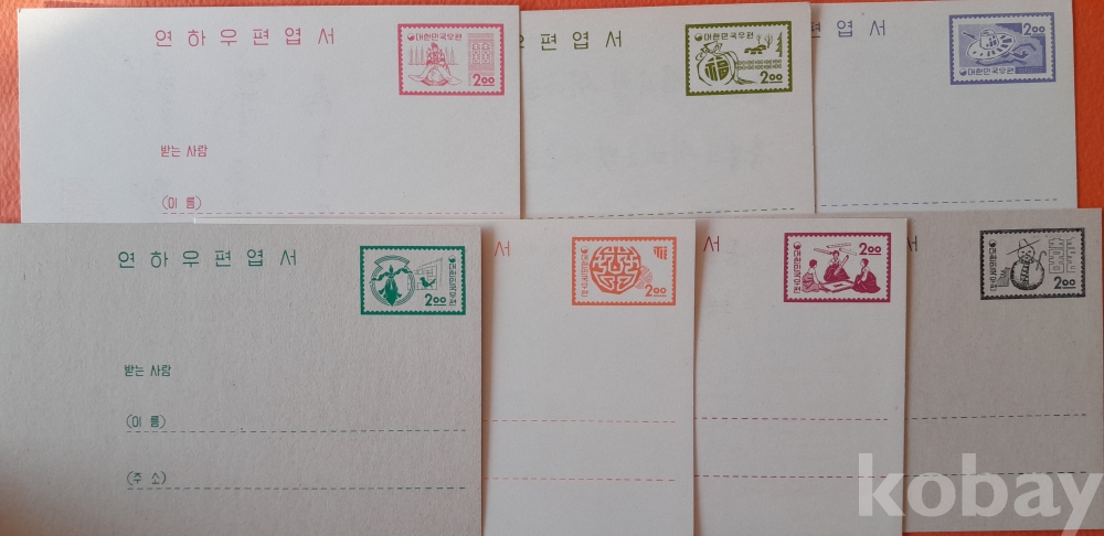 1965년 1966년용 연하 엽서 미사용 7종 완세트 입니다.