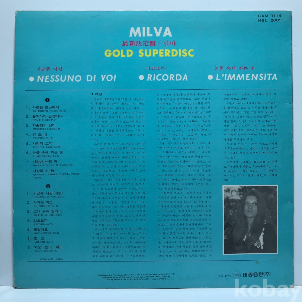 LP 83,740-144 Milva - Gold Superdisc . 자켓 EX 알판 EX 80 년 국내반
