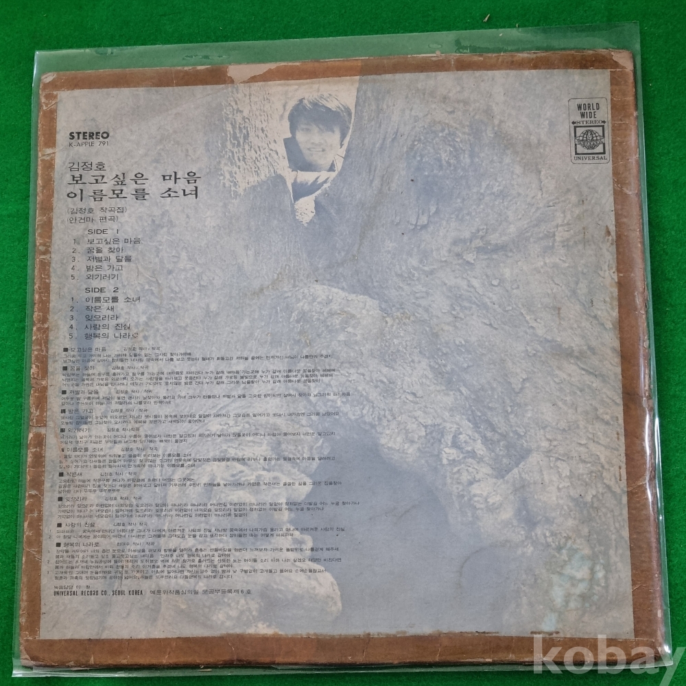 | 자켓상태 | VG : 주름, 접힘, 모서리 찢김 다수 | 음반상태 | VG : 생활 기스 다수, 가벼운 노이즈 존재 | 발매정보 | 알수없음 | 가사지여부 | 유 |