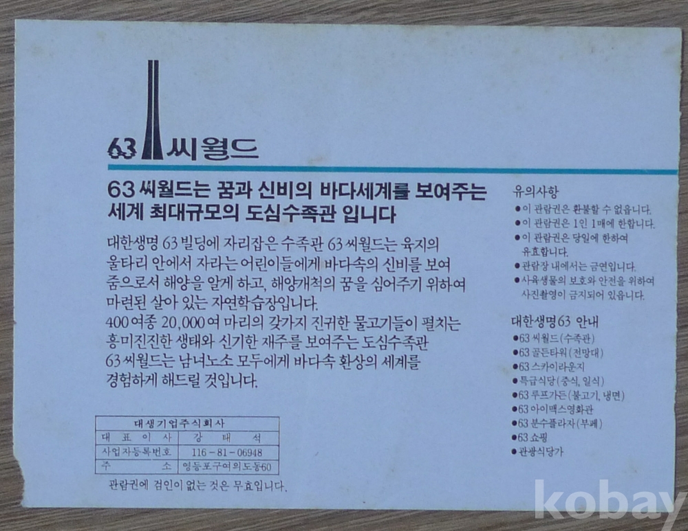 63씨월드 수족관 입장권