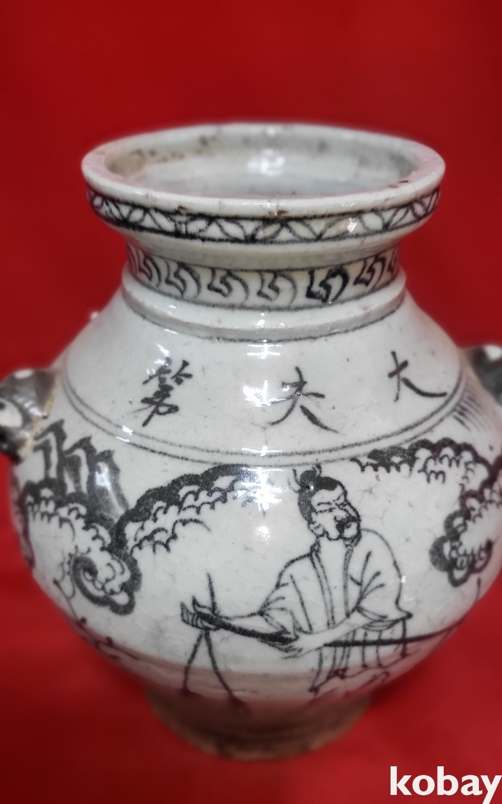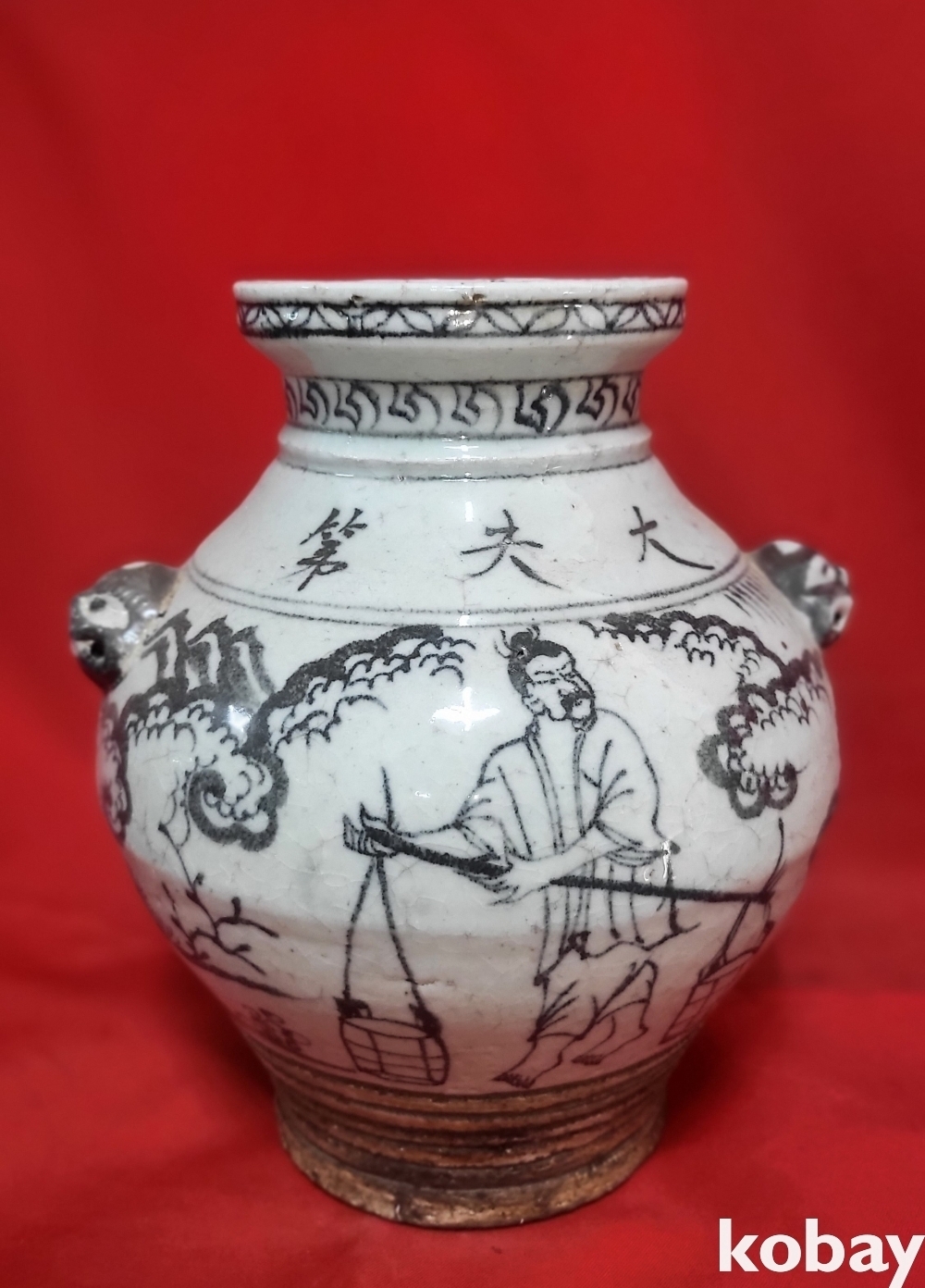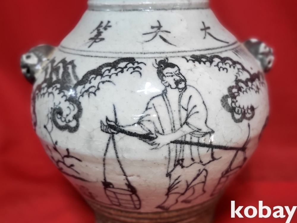 높은 연대를 갖춘 이부 대부제(李府 大夫第) 인물문양 양귀달린(兩耳) 항(樽)입니다,