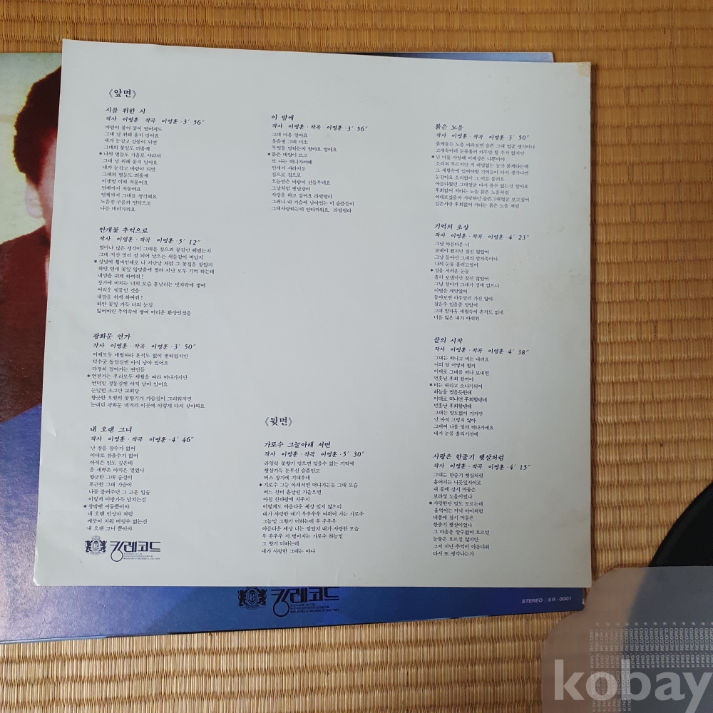 | 자켓상태 | EX : 약간의 마모, 모서리 찢김 존재 | 음반상태 | EX : 재생에 영향 없는 가벼운 기스 존재 | 발매정보 | 알수없음 | 가사지여부 | 유 |