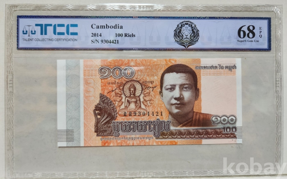 -2014년 캄보디아 100리엘 지폐 TCC68 고등급 입니다.