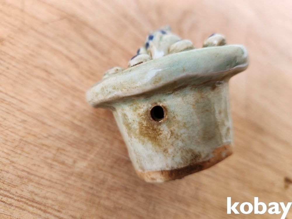 연밥 위에 개구리가 있는 연적 도자기 입니다.