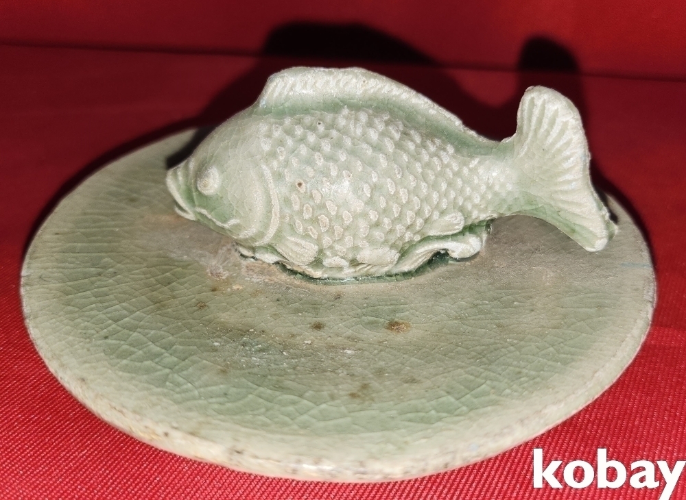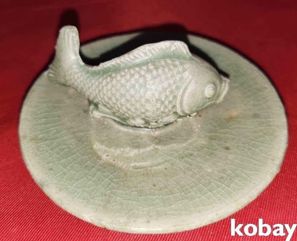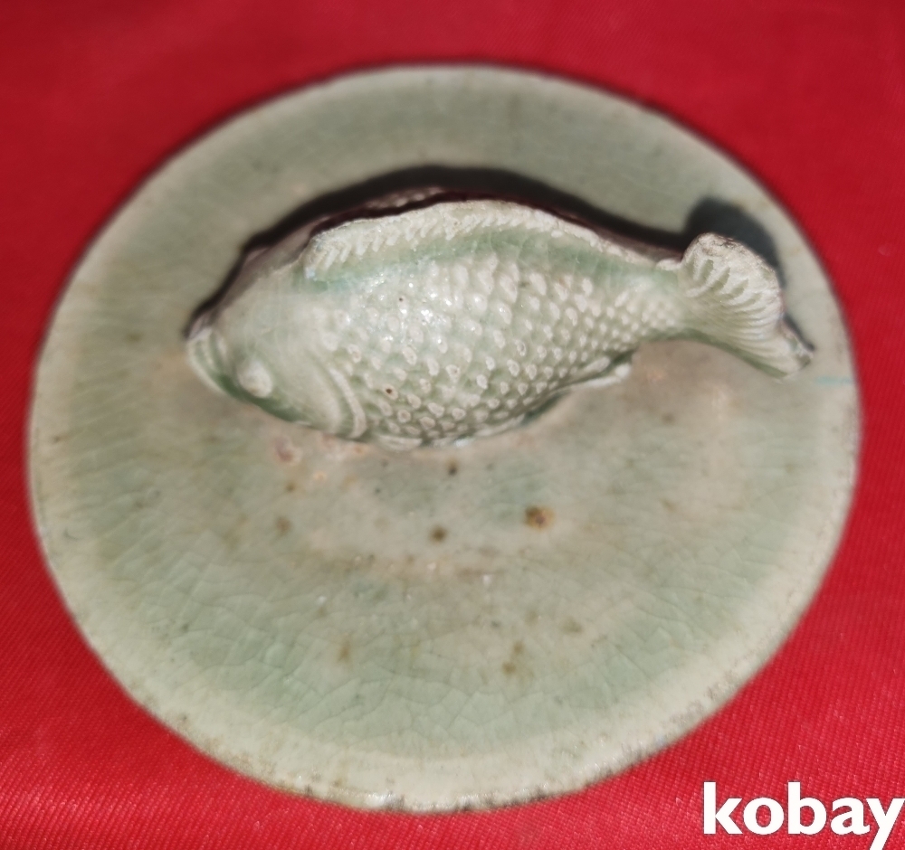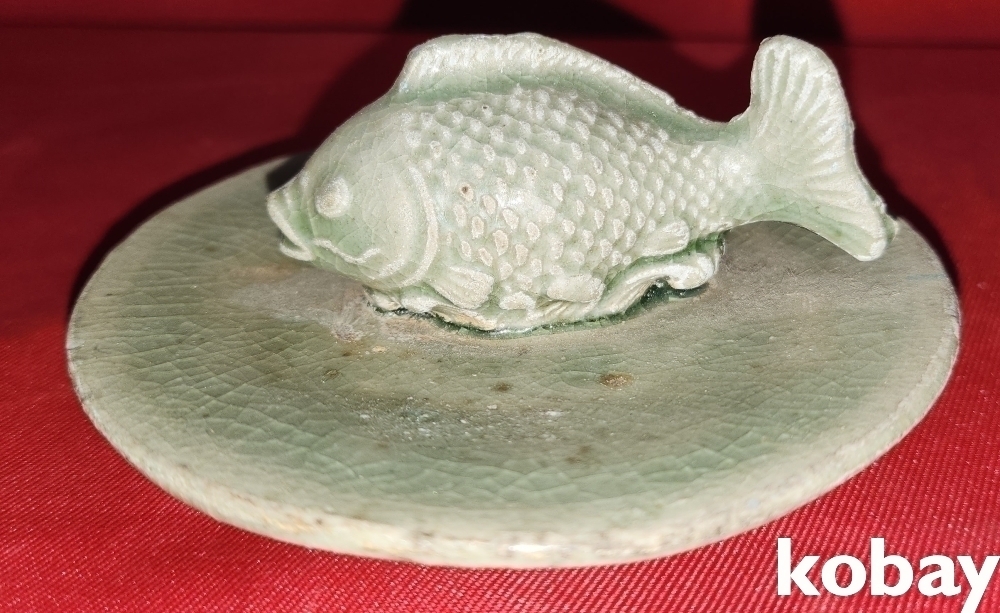 용천요 (龍泉窯) 어문 접시위에 물고기 형상 고도자기입니다,