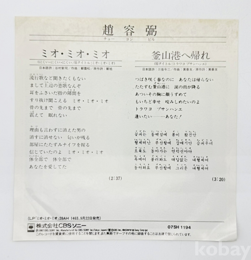 상품 설명 | Side A 1. 미워 미워 미워 (ミオ・ミオ・ミオ) Side B 2. 돌아와요 부산항에 (釜山港へ帰れ) | ||