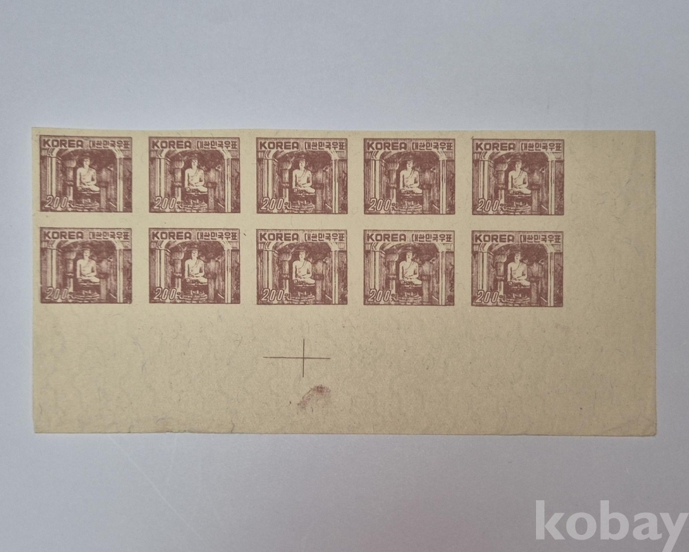 1952년 '제2차 석굴암 보통우표' 무공 10매 블럭입니다.
