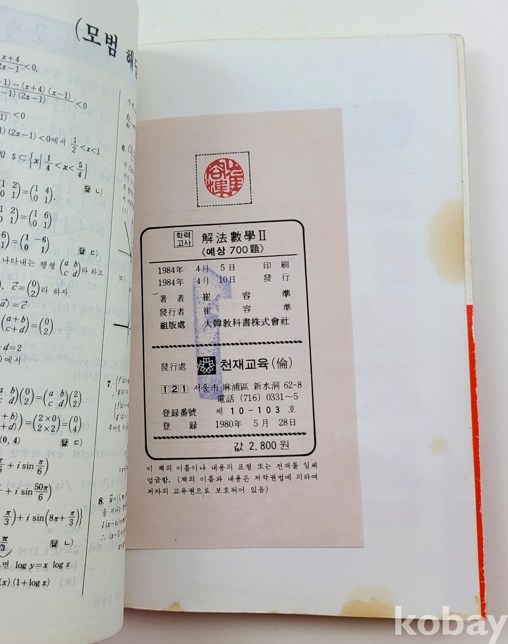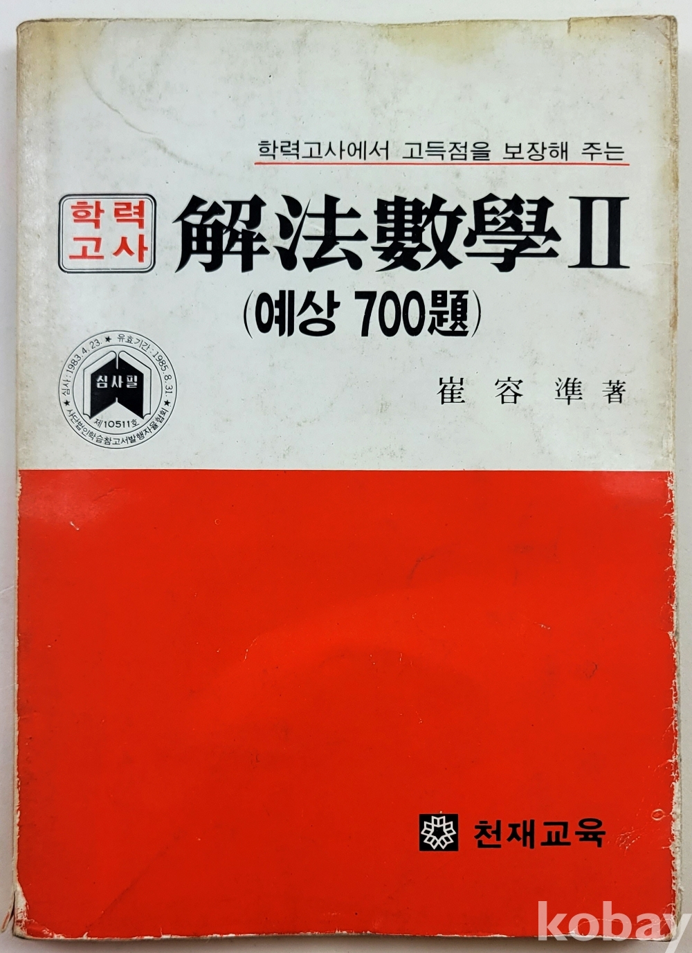 물 품 명 | 학력고사 해법수학(2) : 예상 700제 / 총1권 / 최용준 / 1984년 초판 / 천재교육 |
