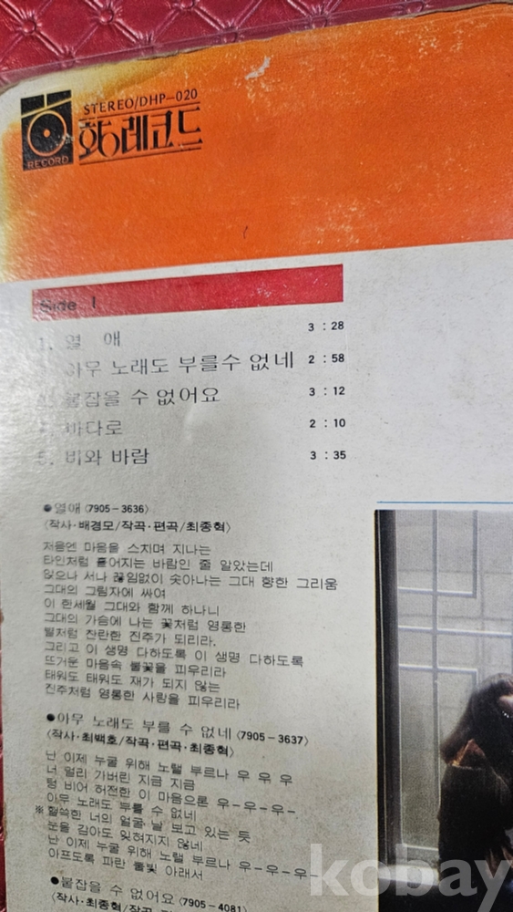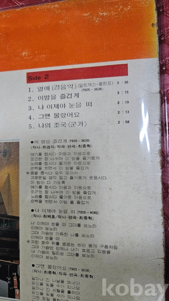 | 자켓상태 | EX : 약간의 마모, 모서리 찢김 존재 | 음반상태 | VG : 생활 기스 다수, 가벼운 노이즈 존재 | 발매정보 | 초반 | 가사지여부 | 무 |