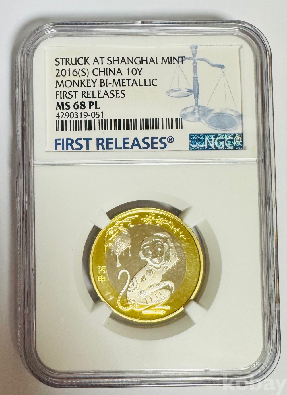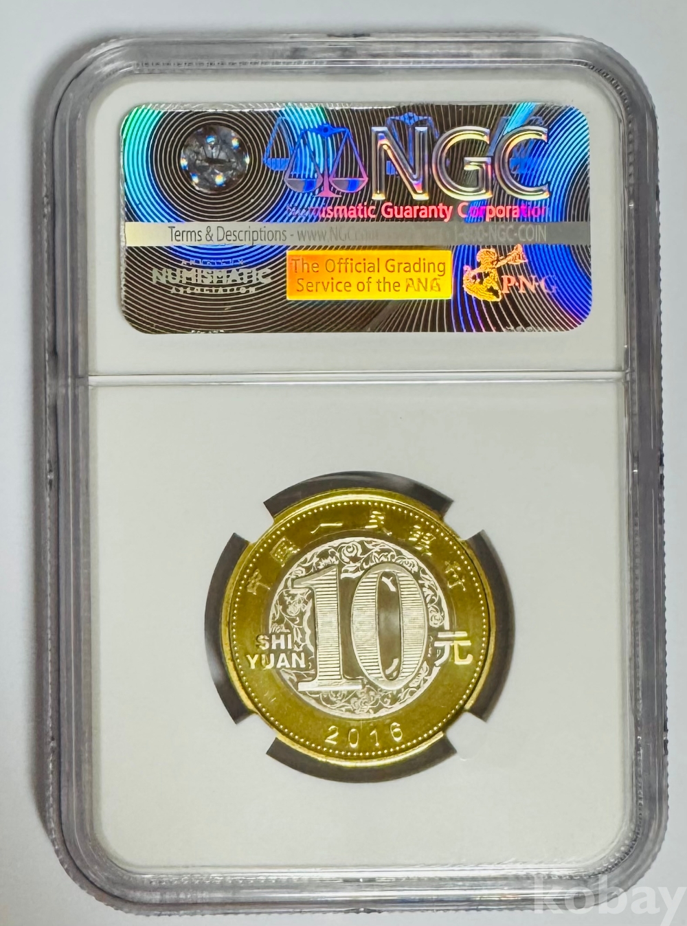 172016년 원숭이해 기념 초판 바이메탈 10위안 주화 NCG MS 68 PL