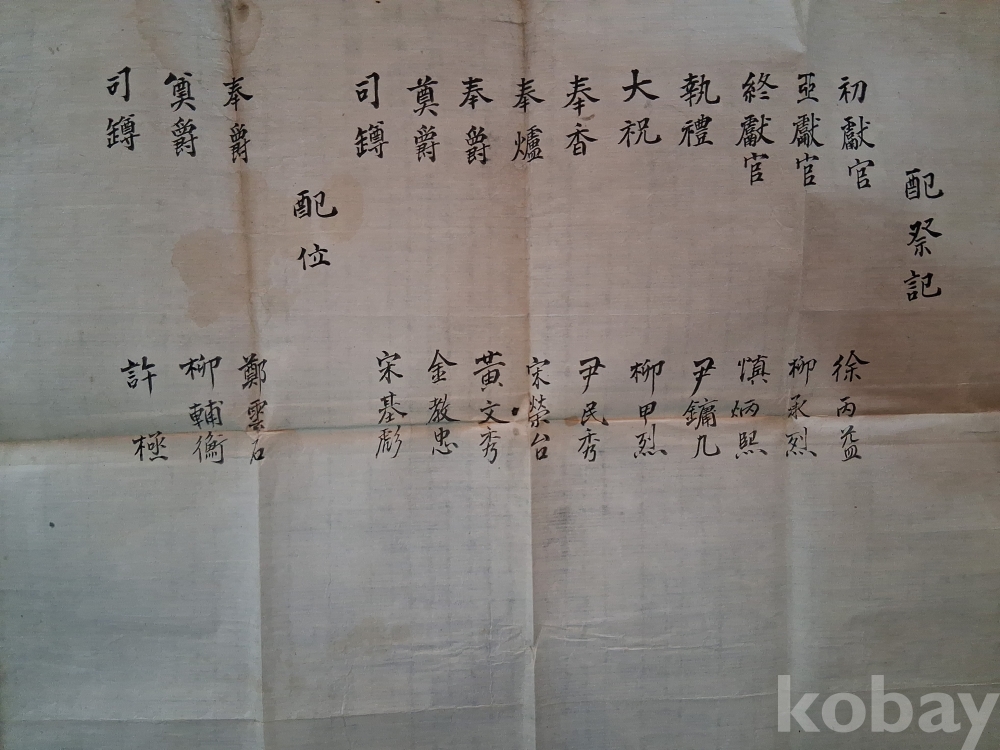 본 제사에 정식으로 모시는 신위 외에, 특별한 사정이나 의례적 이유로 함께 제사하는 신위(예: 후직, 신농 등)를 기록하는 문서로 중국 당·송나라의 예서, 고려·조선의 종묘·사직단 제사 등에서 사용되었으며, 각 신위의 위치와 제사 절차의 정당성을 설명하는 데 활용되었음.