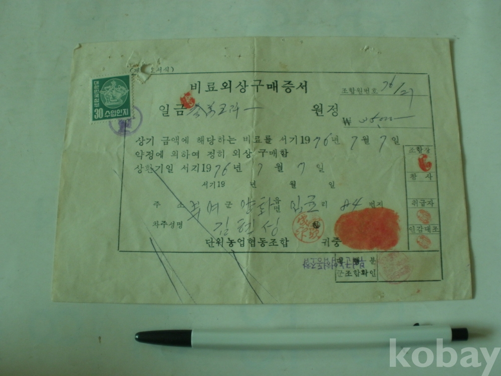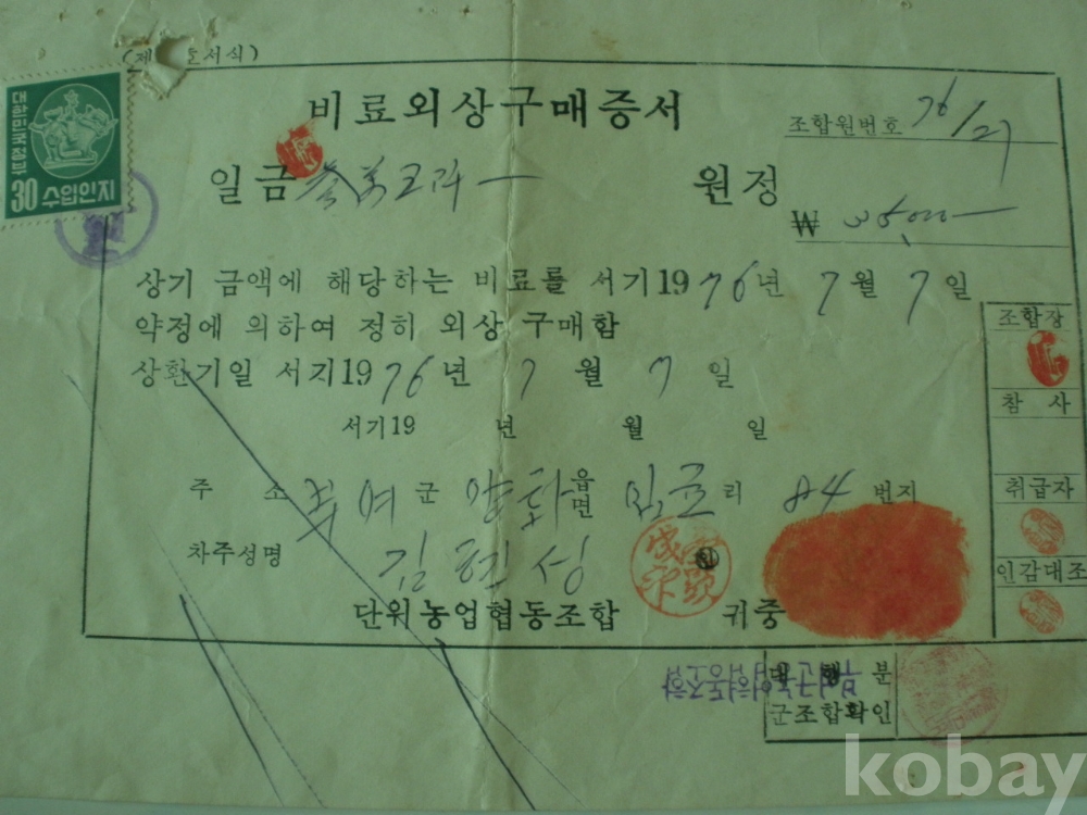 비료 외상구매 증서 (1976년, 부여군농협)