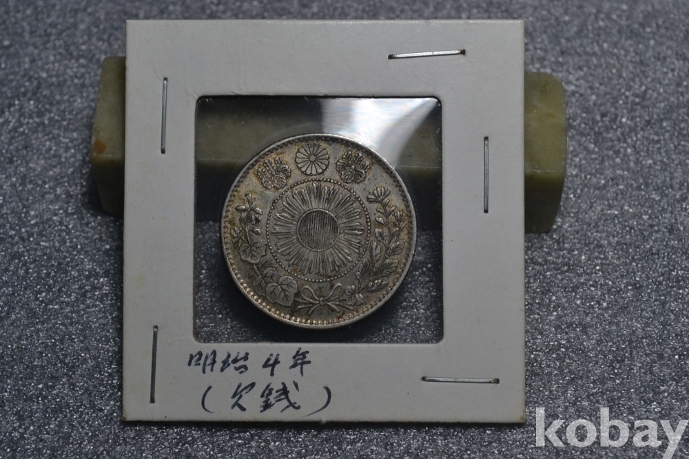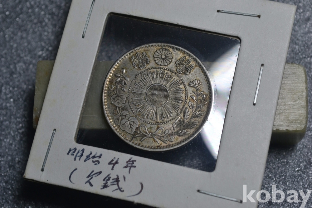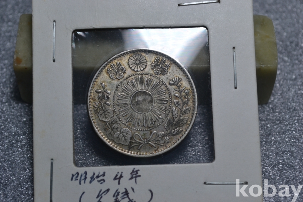 100년 넘는 오래된 명치초기 발행작품으로 명치4년도(1871년도) 일본 초창기 " 결전,흠전(欠錢) " ~ 욱일용 20전 은화 입니다.