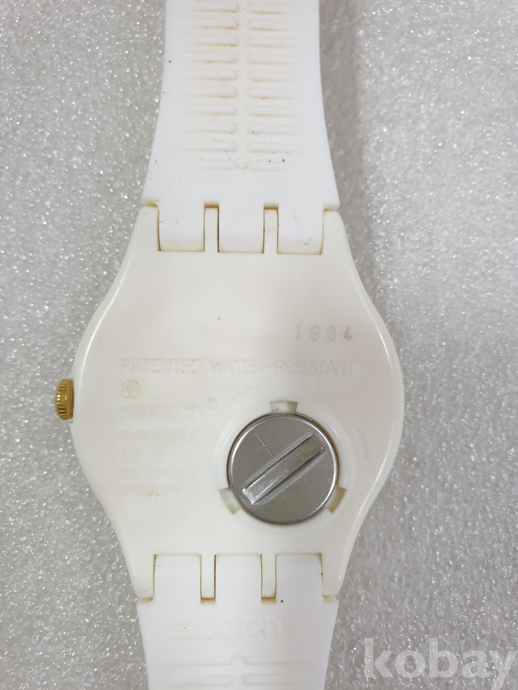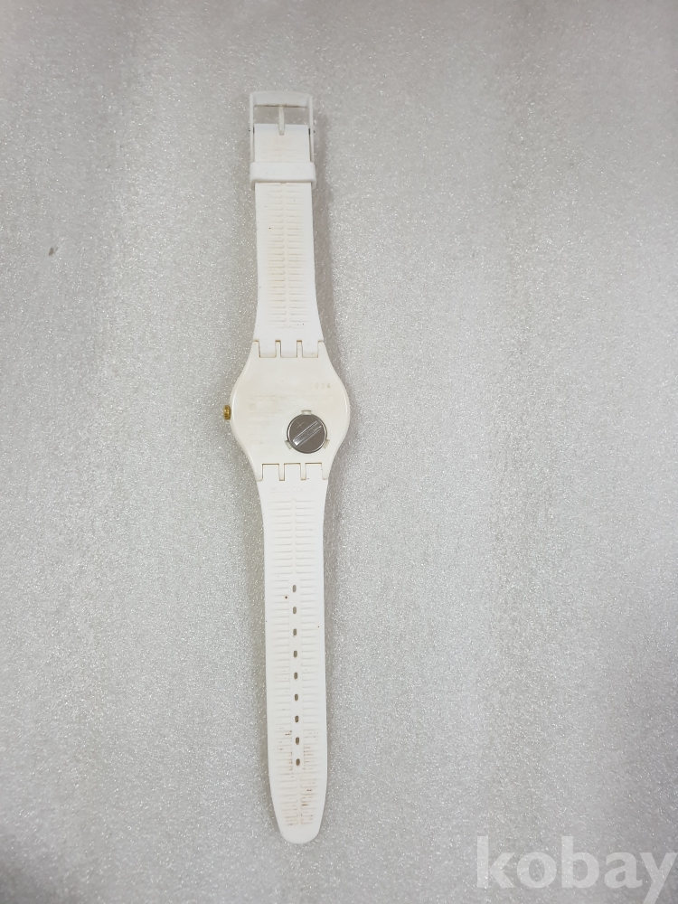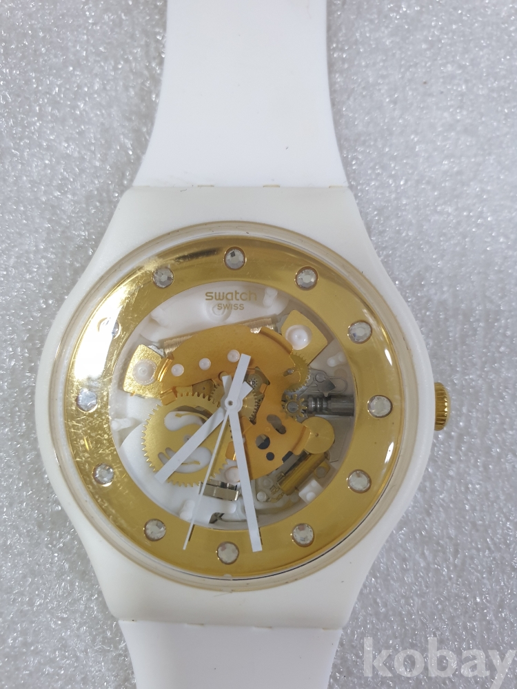 {천원경매} 1-1826 스와치 선레이 글램 흰색줄 손목시계 (작동확인안됨, 정품확인불가)