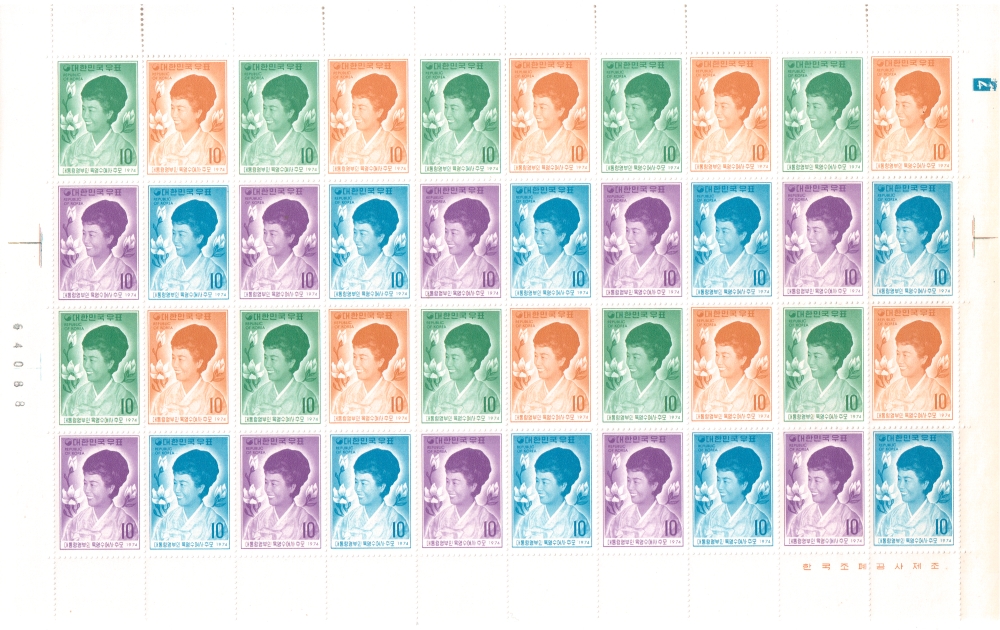 (한국전지) 1974.11.29 대통령 영부인 육영수여사 추모 sheet of 40 MNH