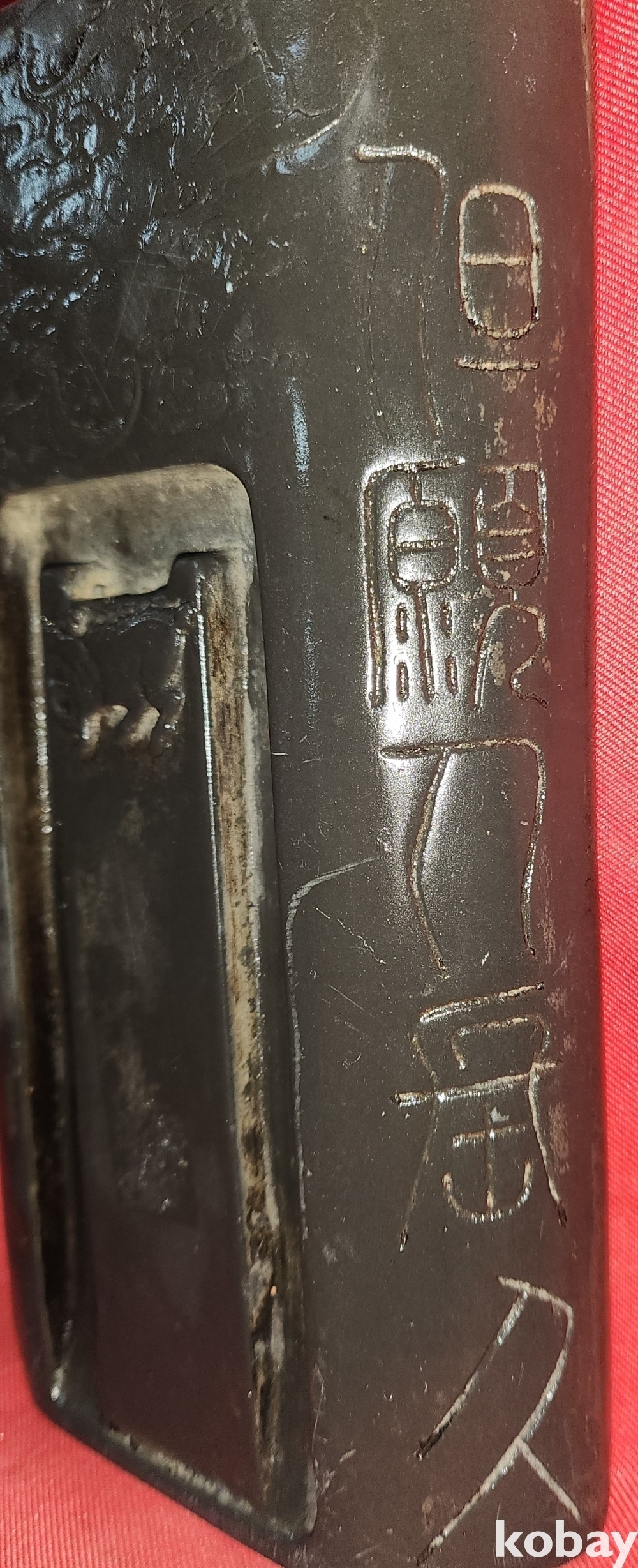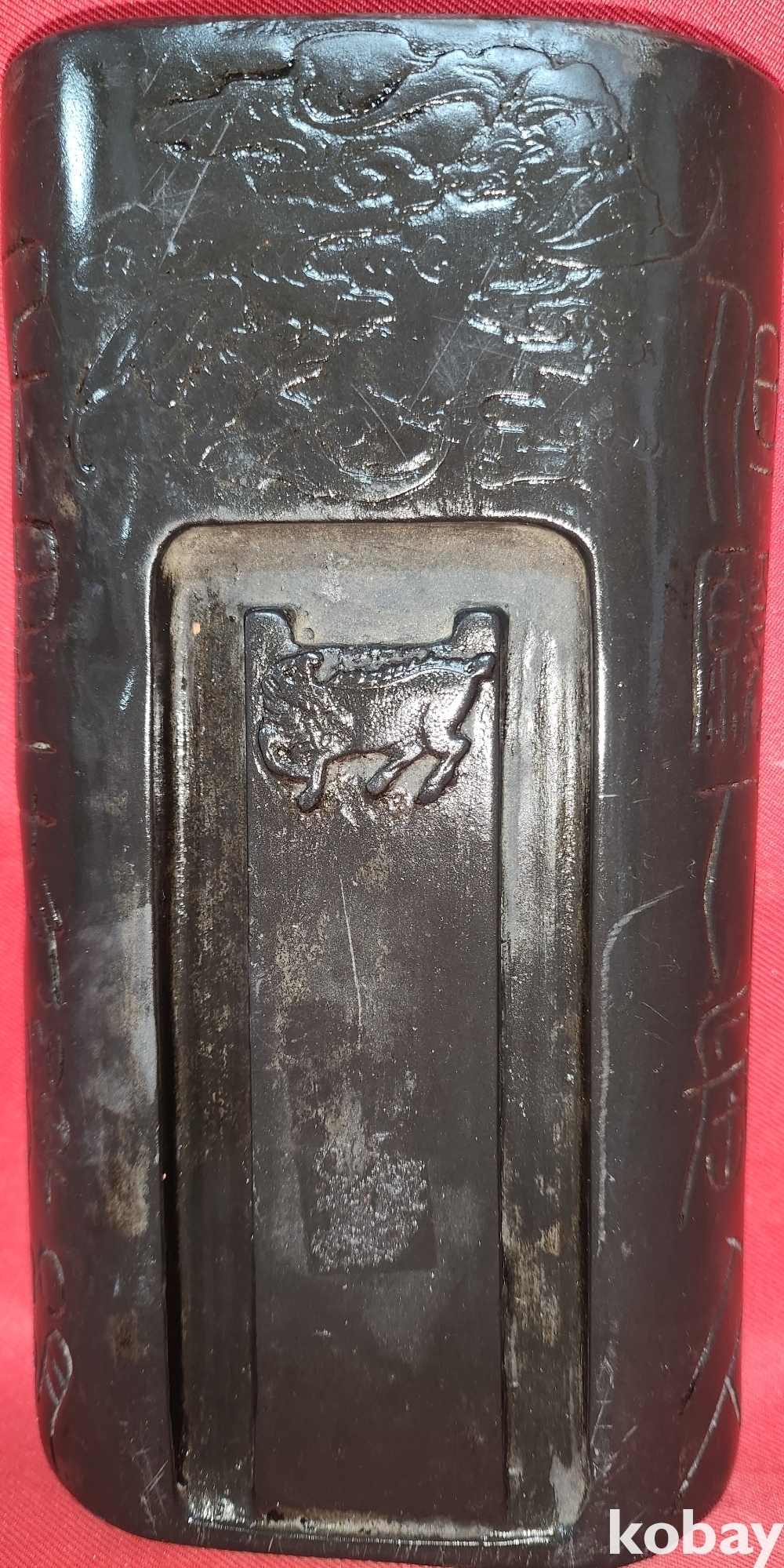 양면에 음각 서체가 있고 중앙에는 서수가 보입니다,