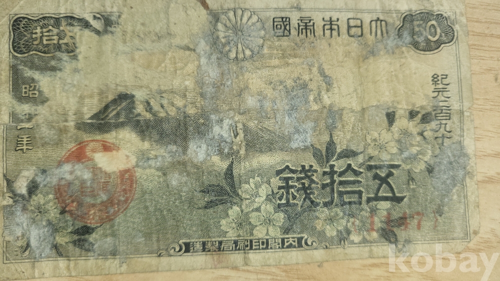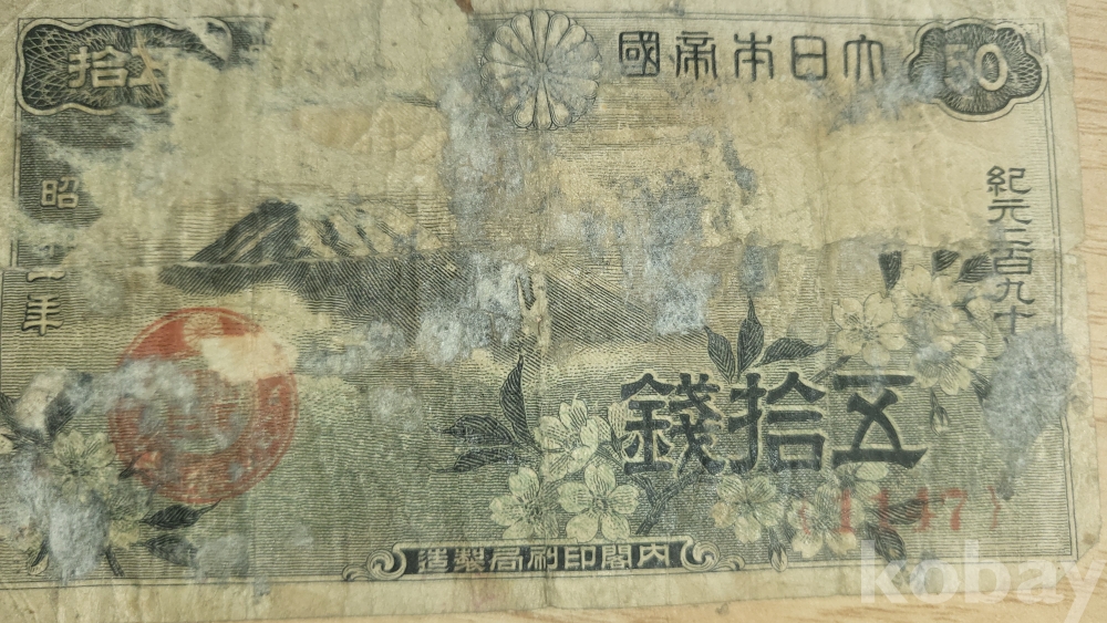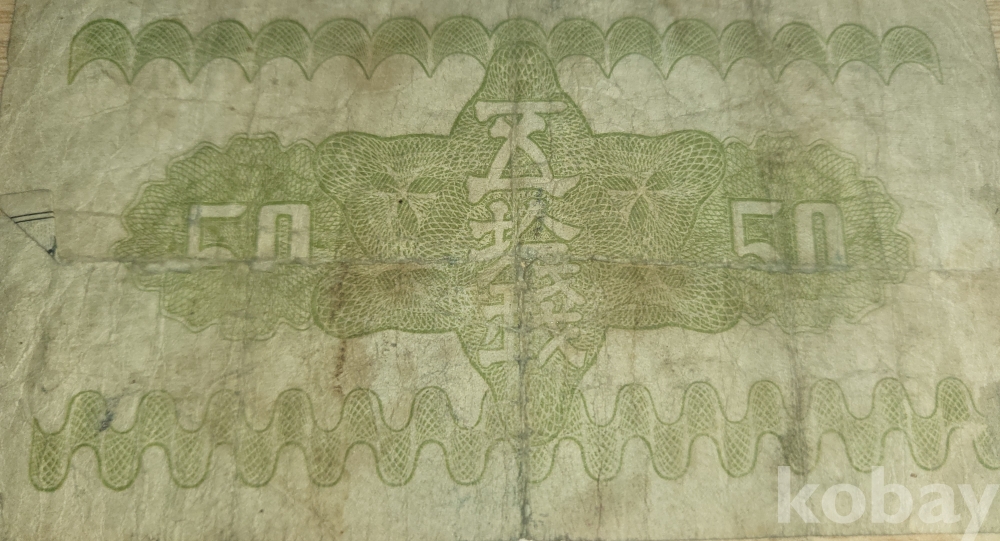 1930년대 발행된 대일본제국 50전 지폐입니다,