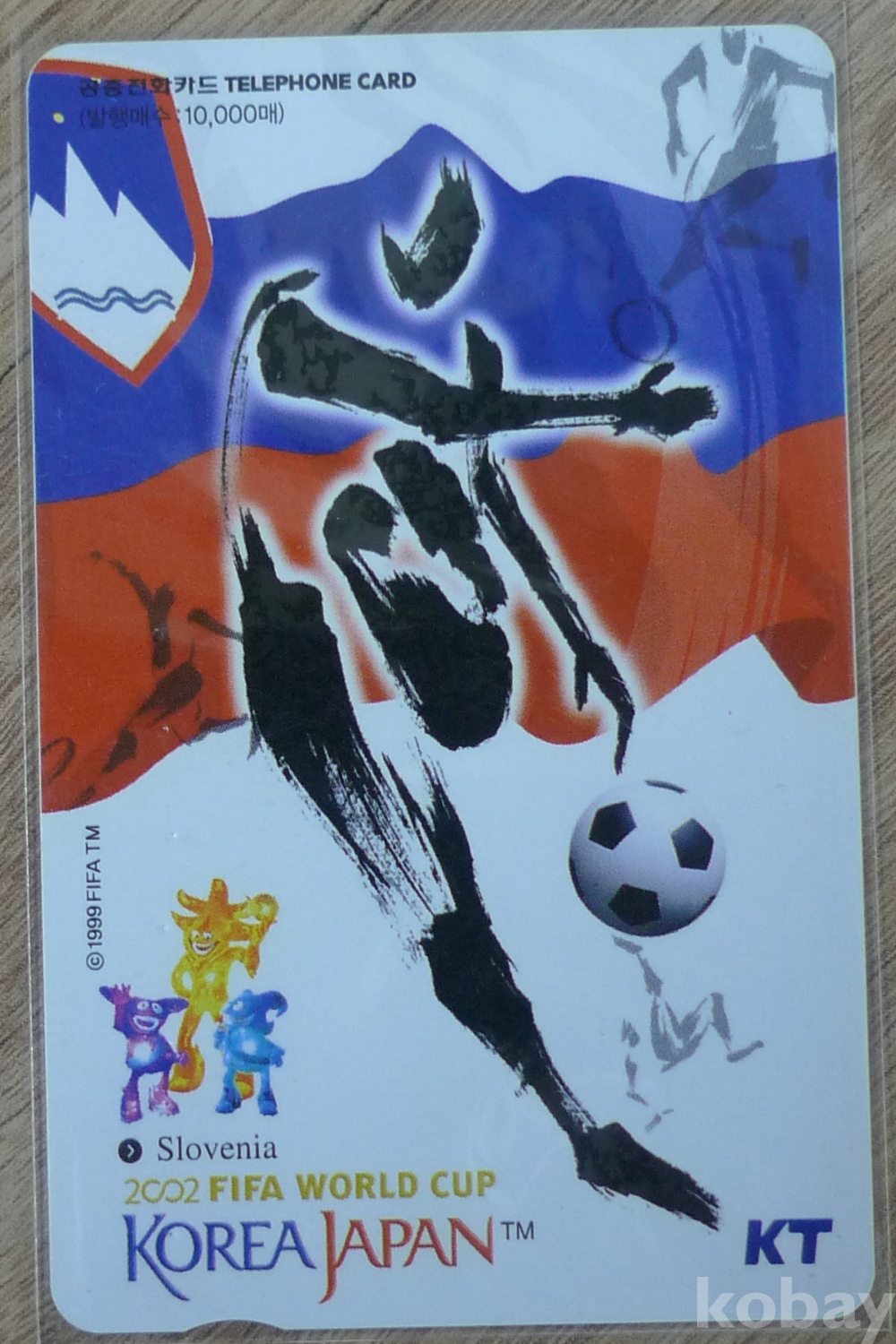 앞면 참가국 슬로베니아 국기와 2002한일월드컵 마스코트