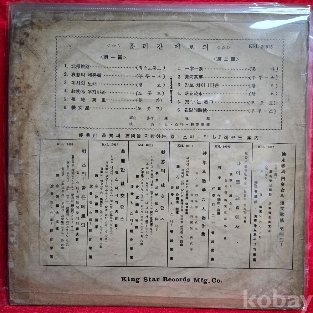 | 자켓상태 | VG : 주름, 접힘, 모서리 찢김 다수 | 음반상태 | VG : 생활 기스 다수, 가벼운 노이즈 존재 | 발매정보 | 초반 | 가사지여부 | 무 |
