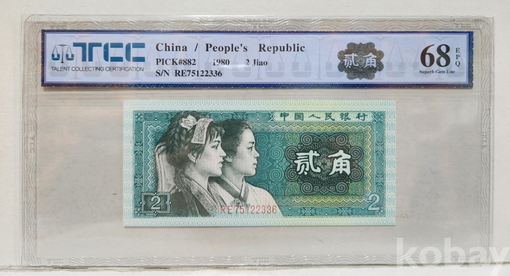 -1980년 중국 인민은행 발행 2각 지폐 TCC68 고등급 입니다.