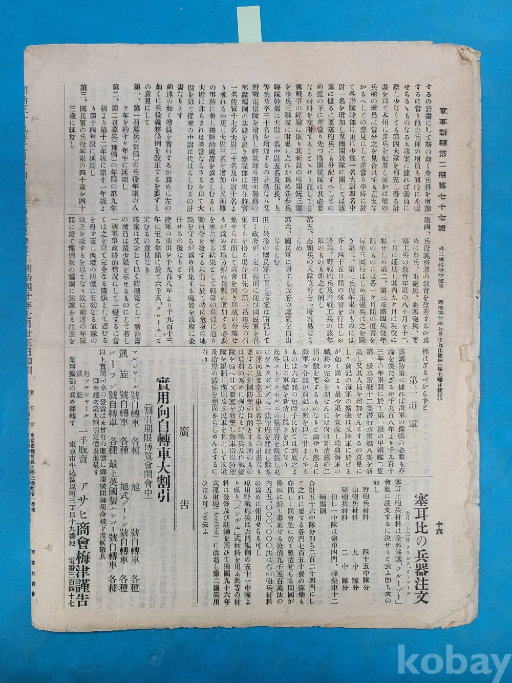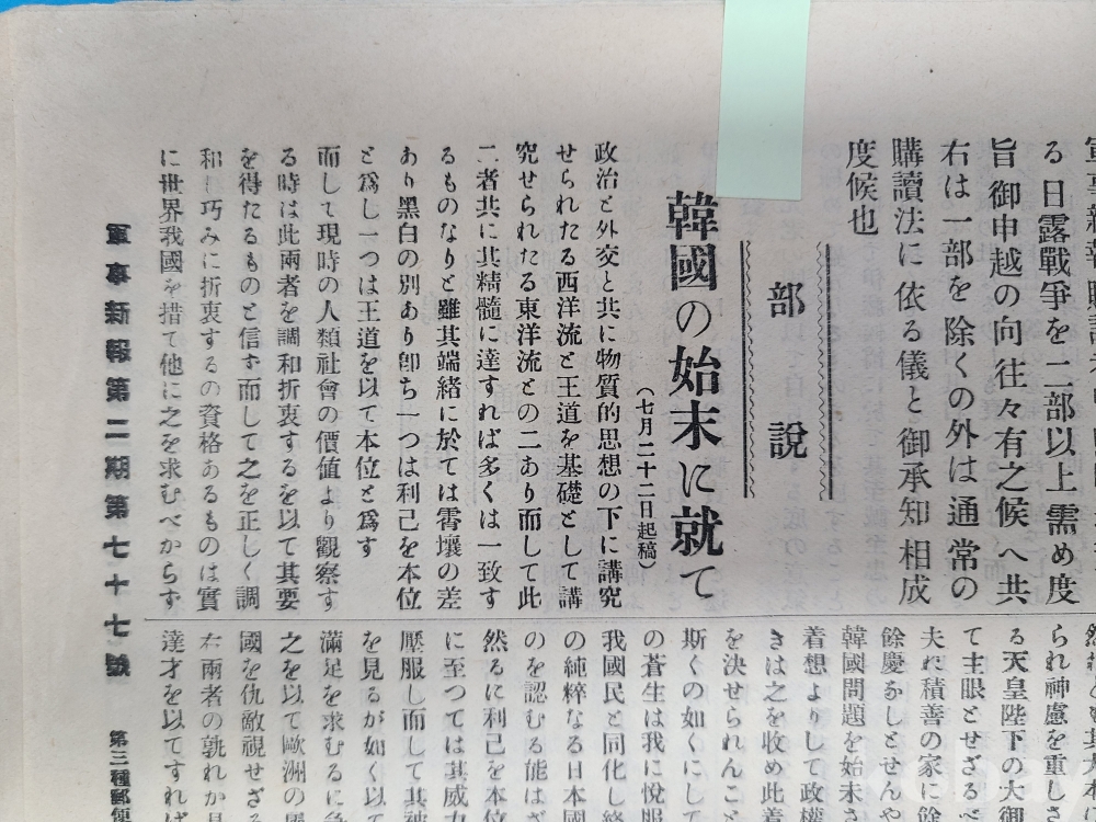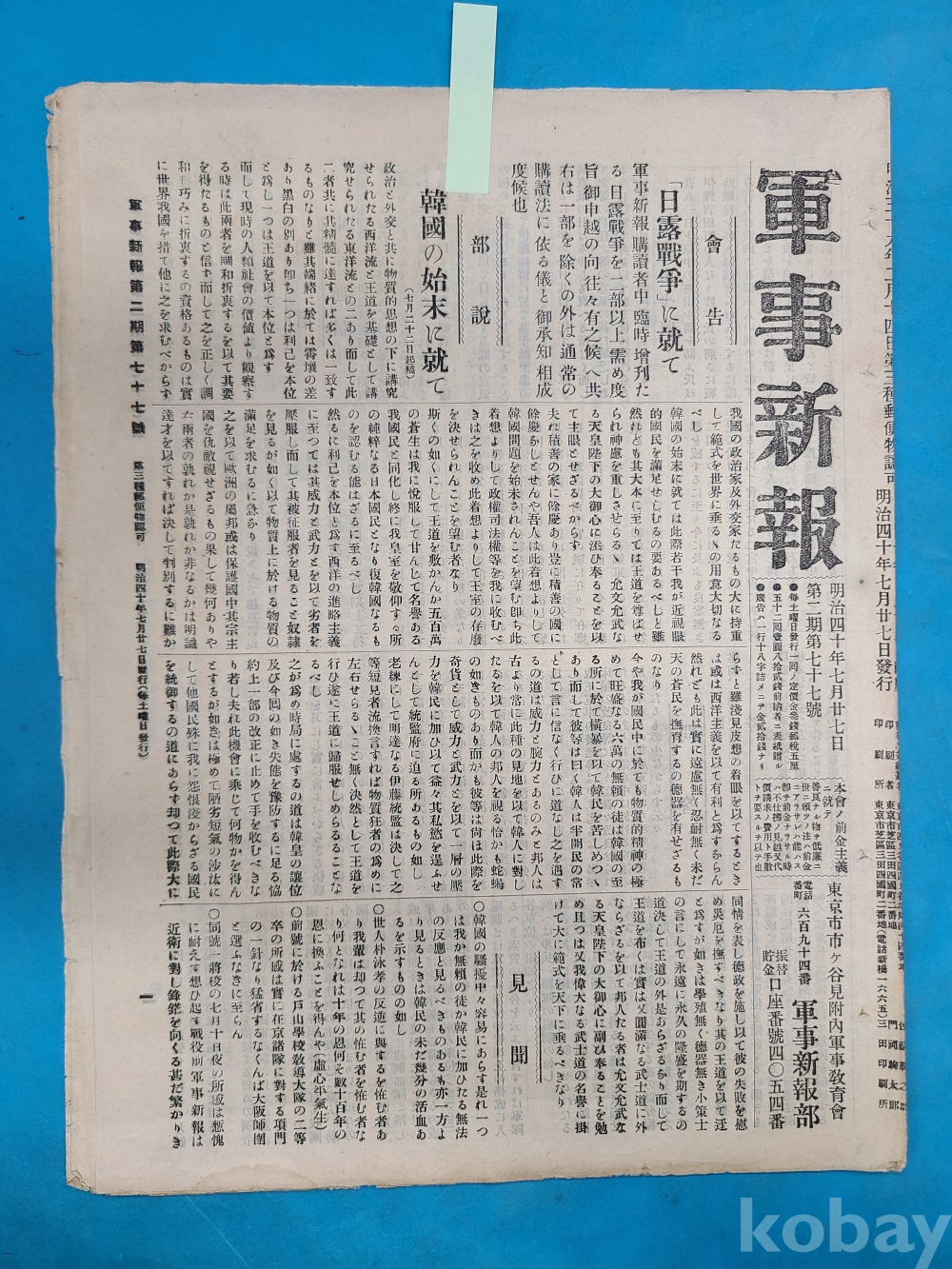 韓國관련 내용이 포함된 [軍事新報]/ 1907년7월27일/일본 발행. 16면./23*32cm
