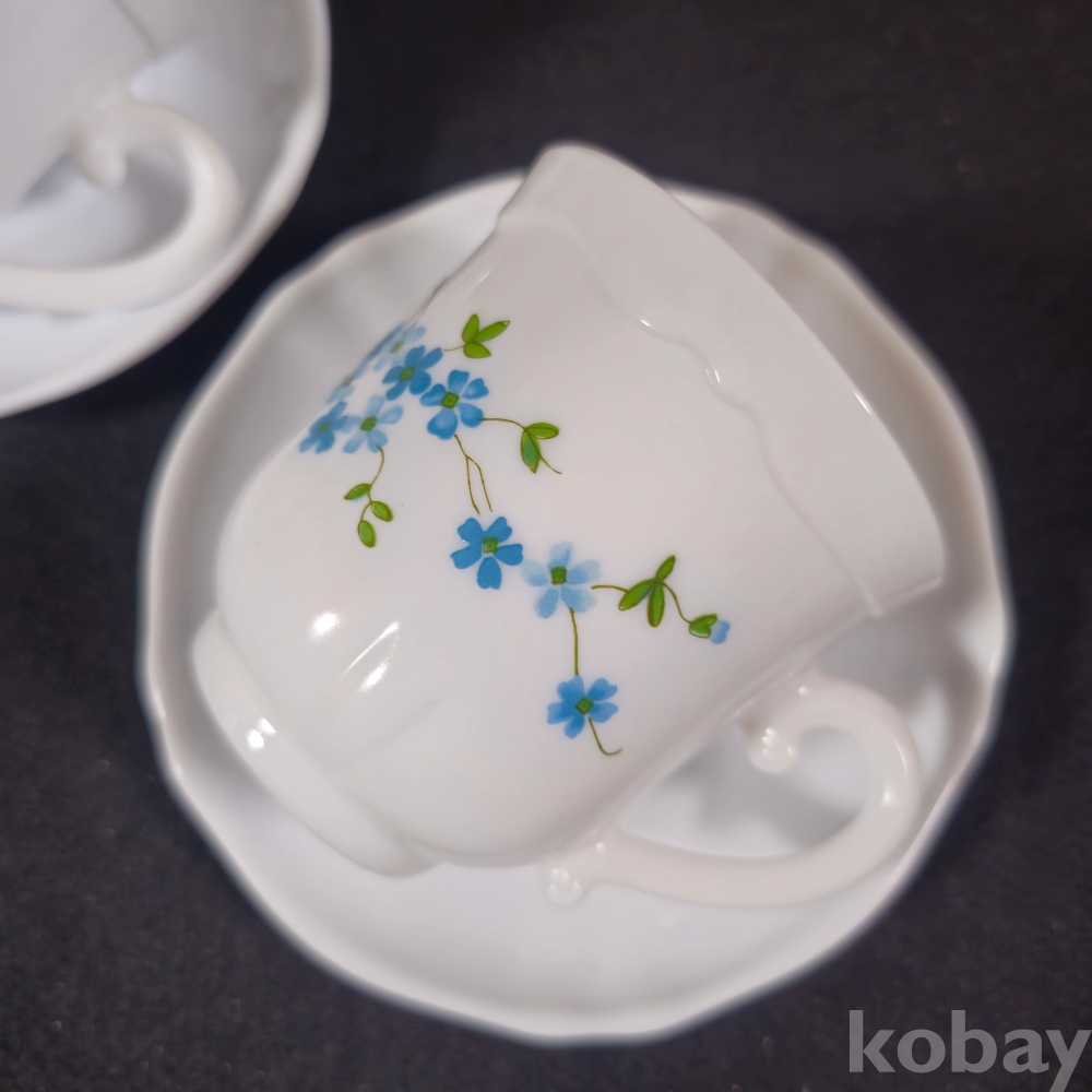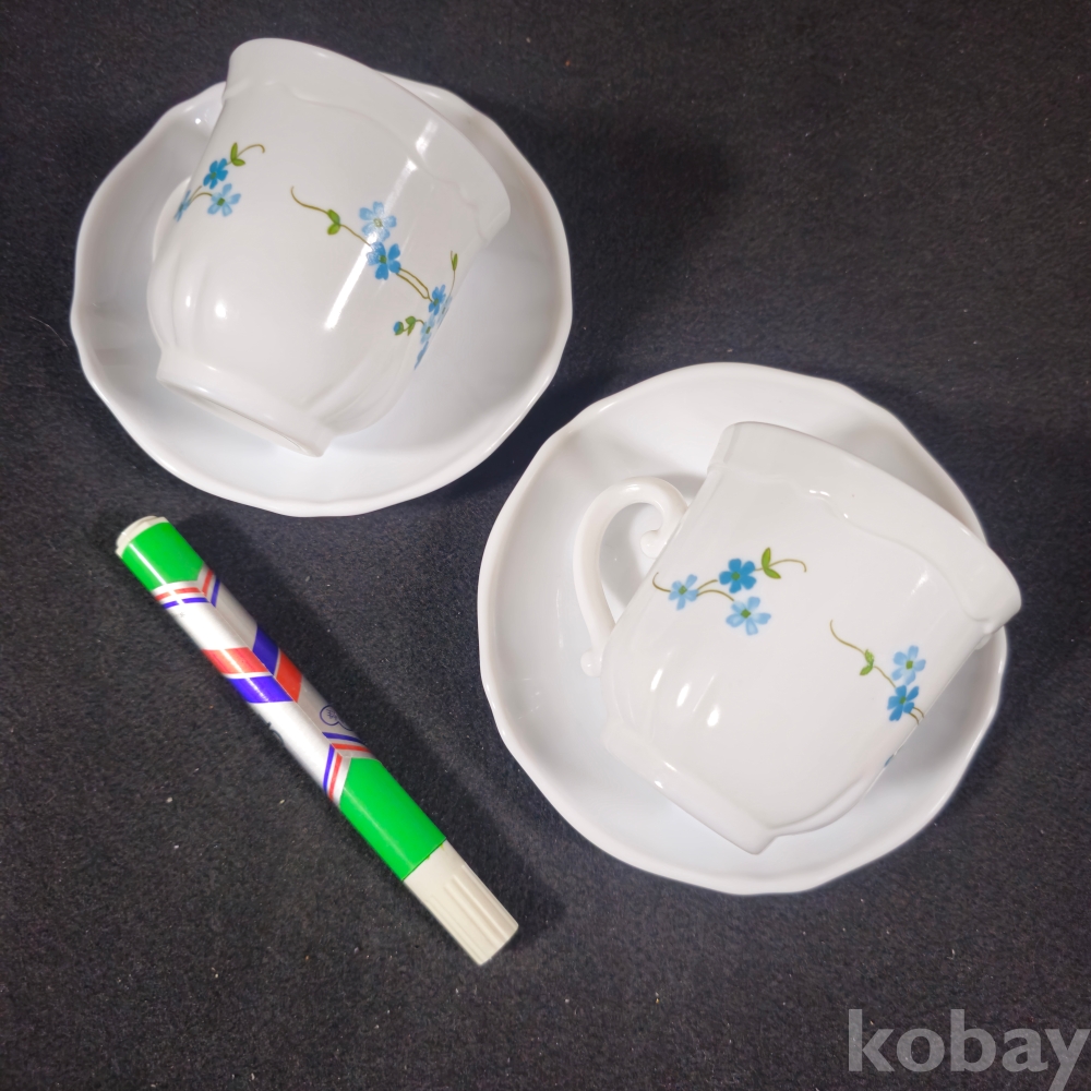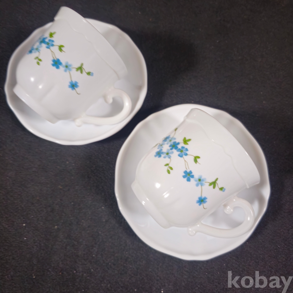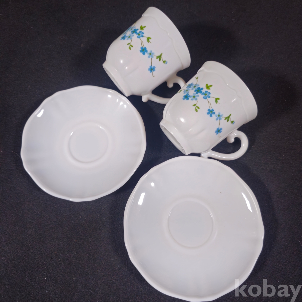 (((근현대사자료/빈티지커피잔))) 1990년대 프랑스에서만든 꽃문양이 이쁜 커플 커피잔/잔받침 (arcopal FRANCE)