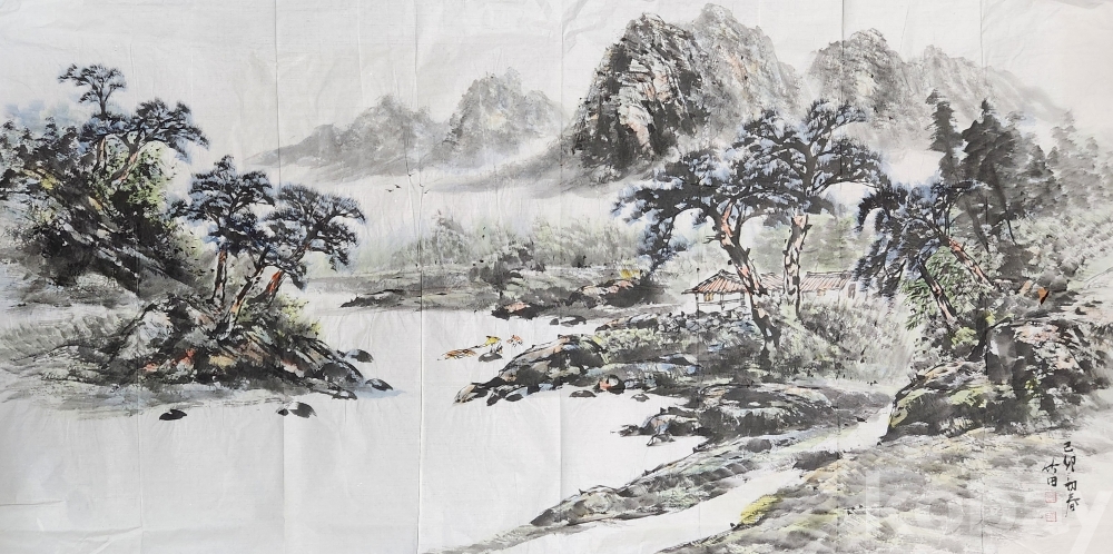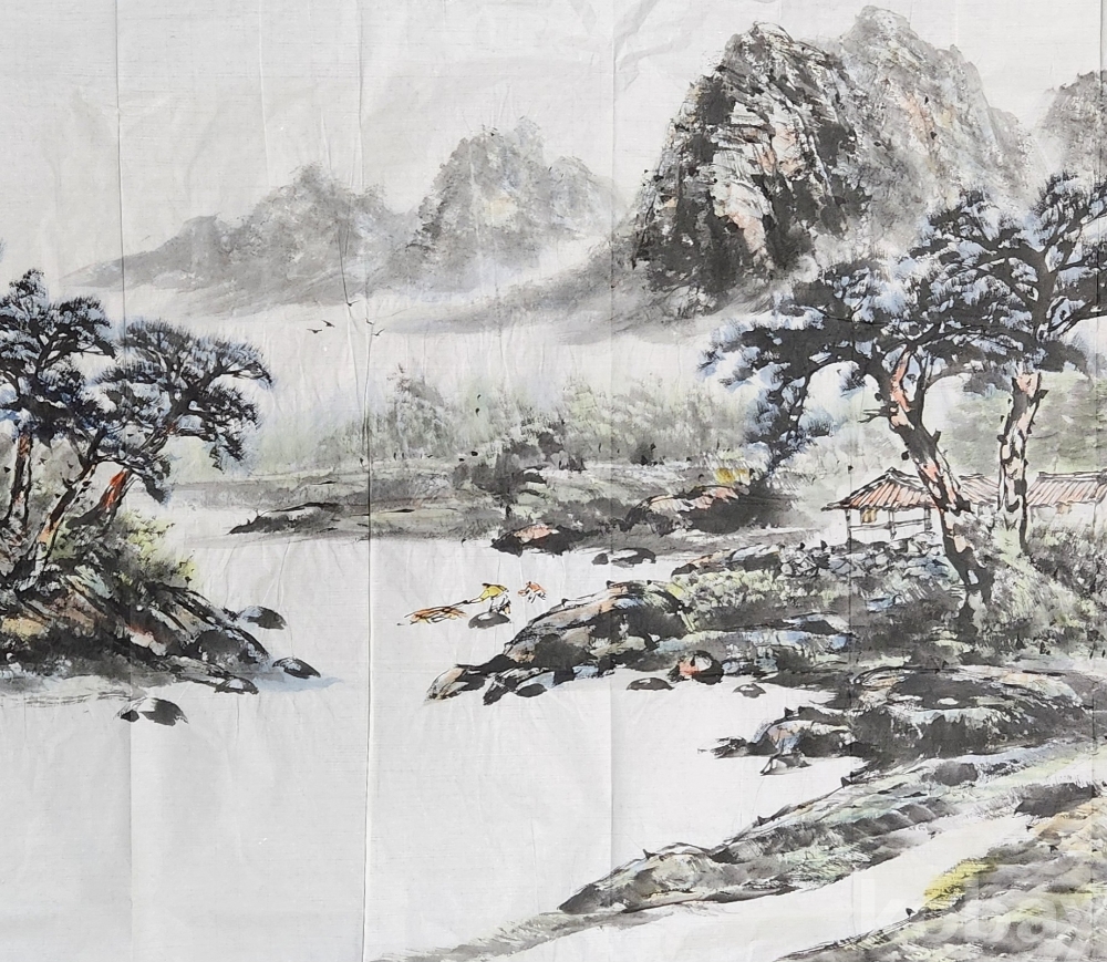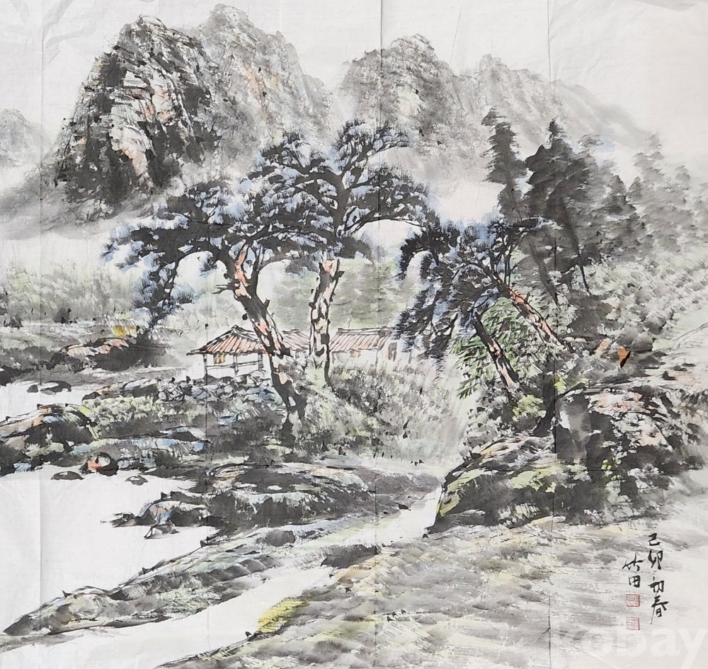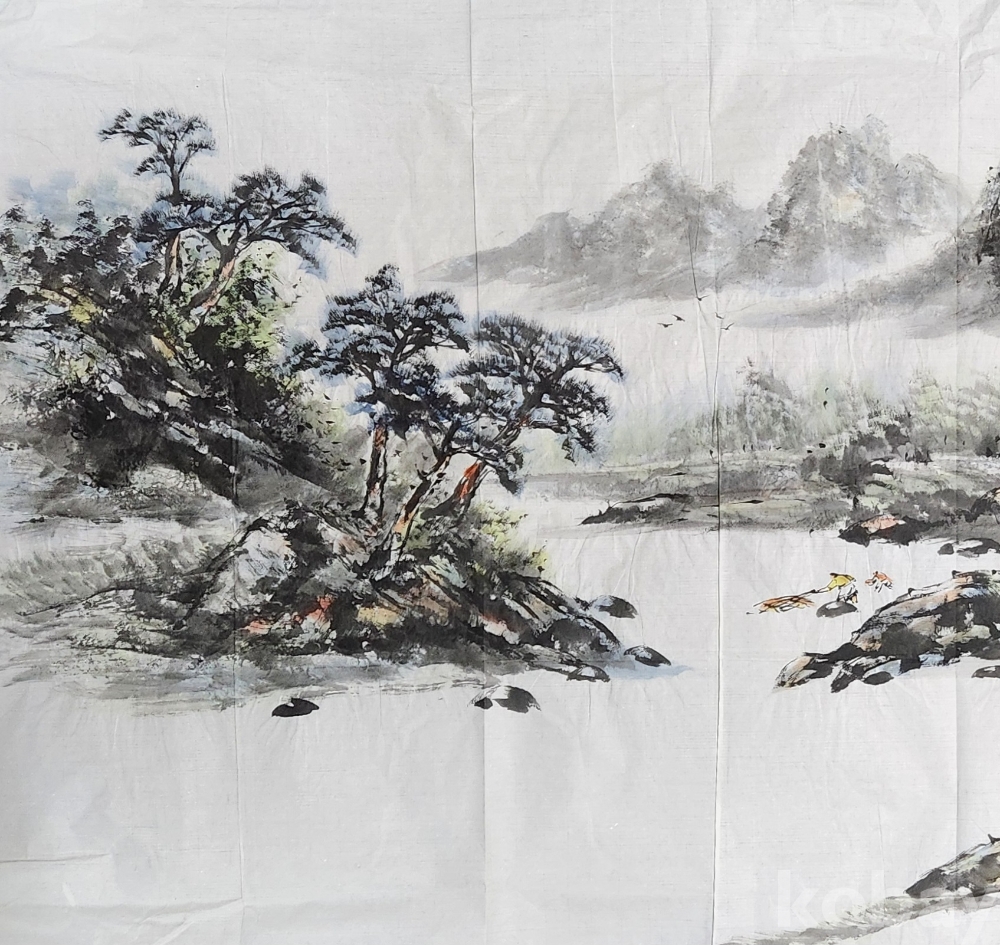작품 오른쪽 중앙에 약1cm가량 찢겨 나간 부분이 있으나 배접시 보정이 가능 합니다