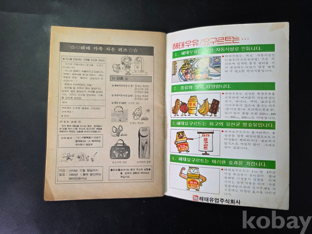 출판사 | 해태유업주식회사 | 상태 | 상세 상태 사진 참고 |