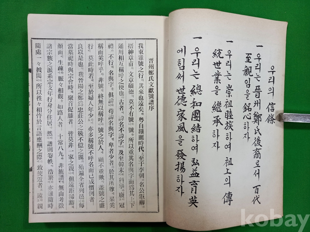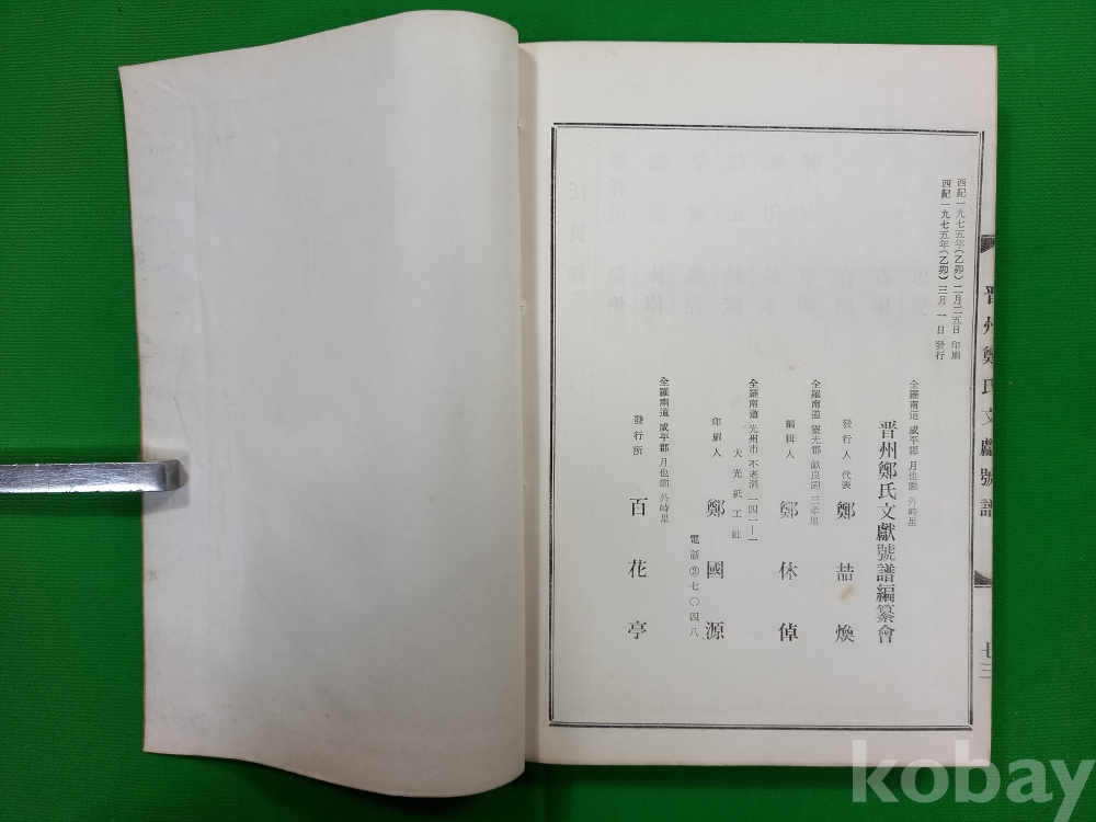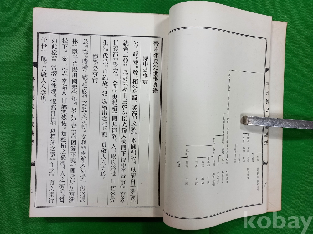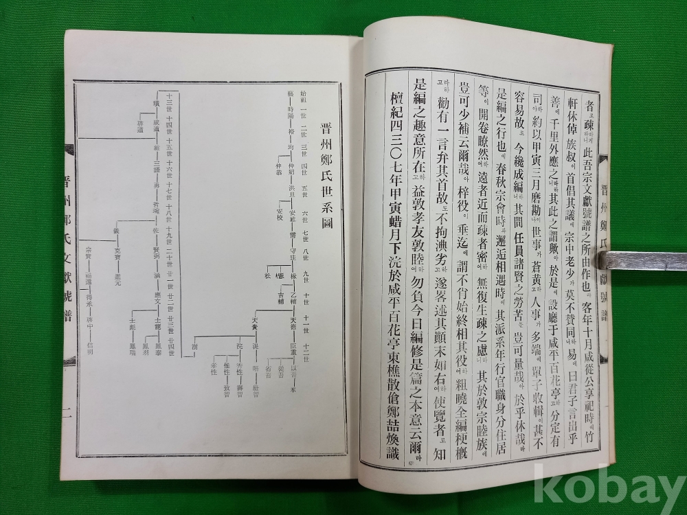 이 책은 『진주정씨문헌호보(晋州鄭氏文獻號譜)』로, 진주 정씨 가문의 문헌 및 족보 관련 내용을 담고 있습니다.