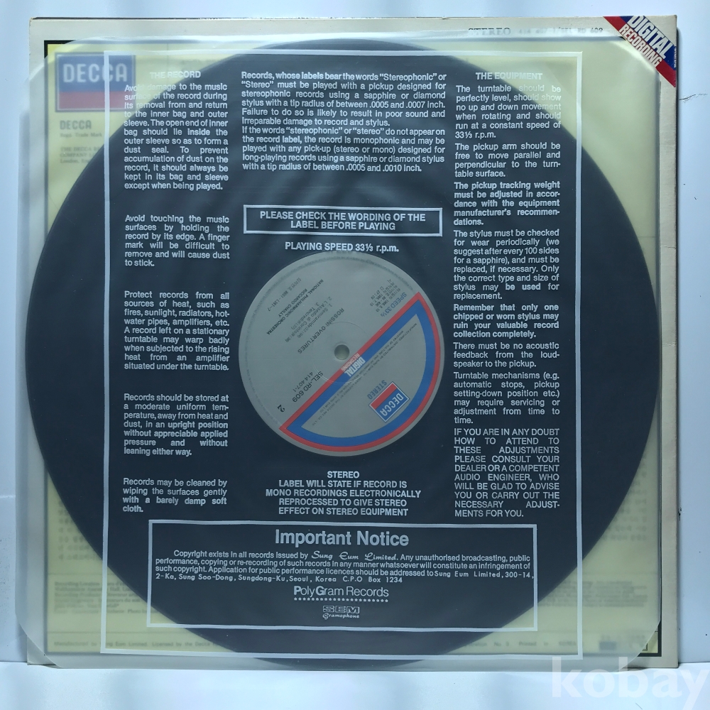 LP 30,940-76 Rossini - 로시니 세빌리아의 이발사 서곡 - Riccardo Chailly 86 성음 자켓 EX+ 알판 NM
