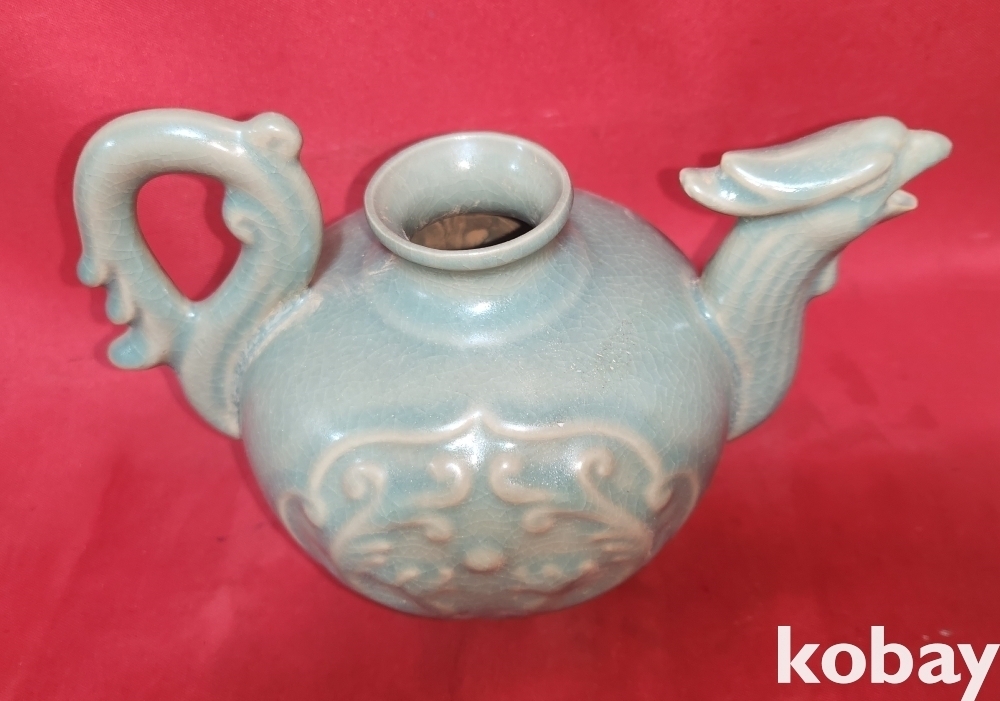 비색청자 양면에 용과봉화 문양 주전자입니다