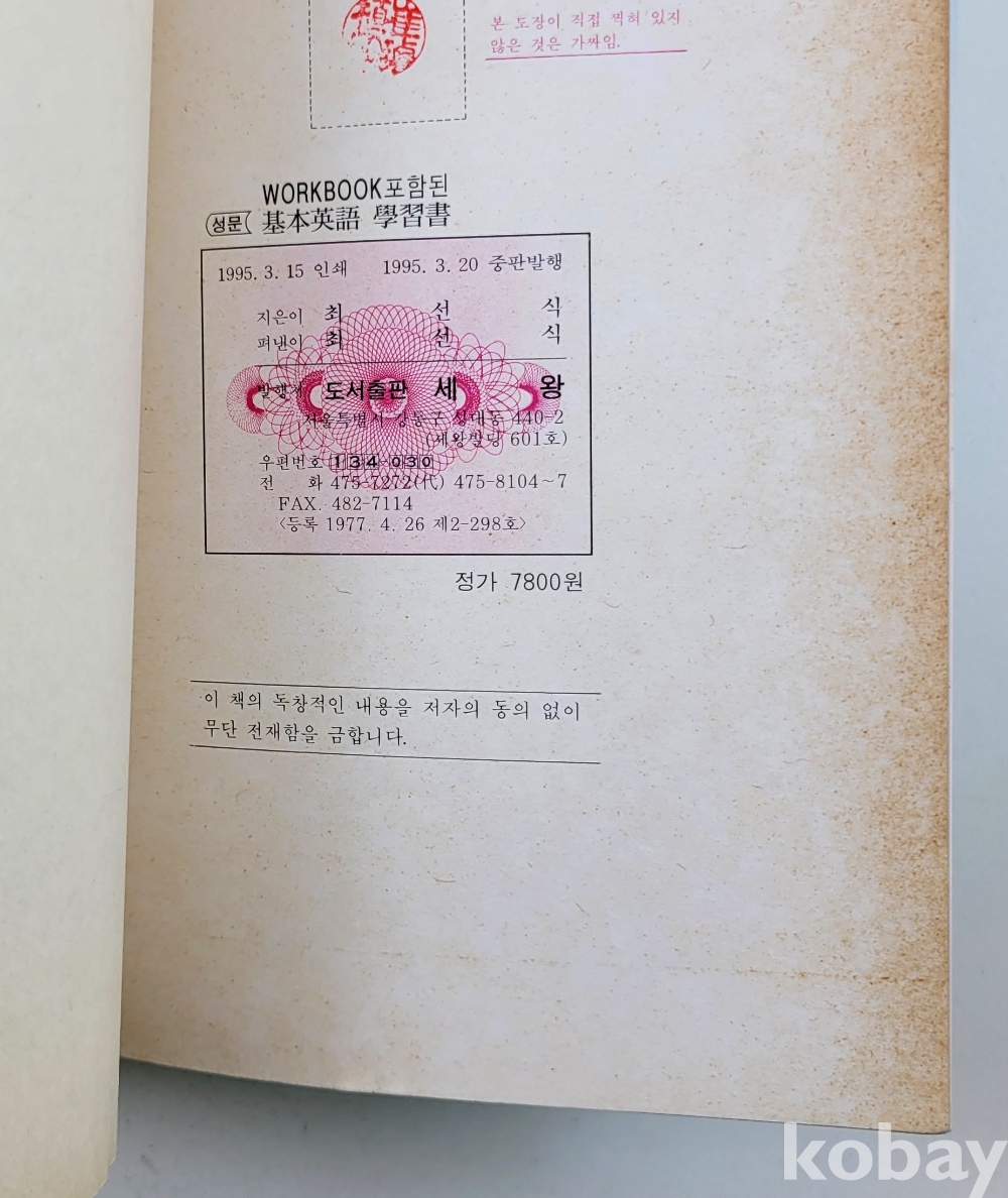 물 품 명 | 성문 기본영어 ⦁ 학습서 총 2종 / 1994, 1995년 / 송성문, 최선식 / 성문출판사, 세왕 |