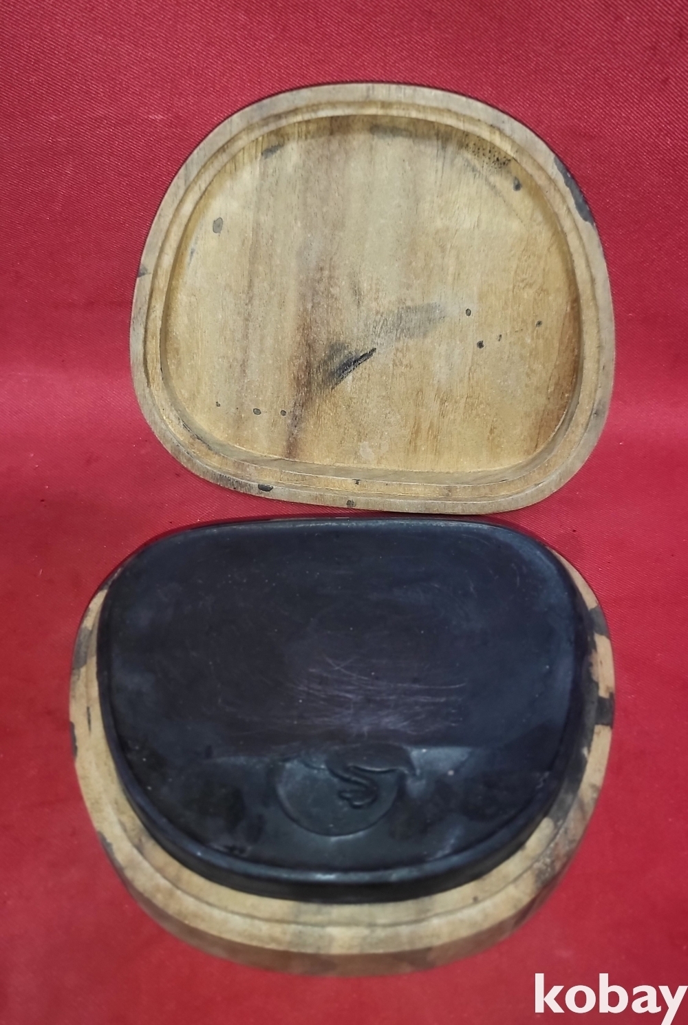 높은 연대 갖춘 괴목 나무로 완성된 오리문양 벼루 입니다.