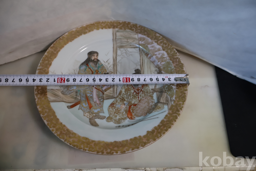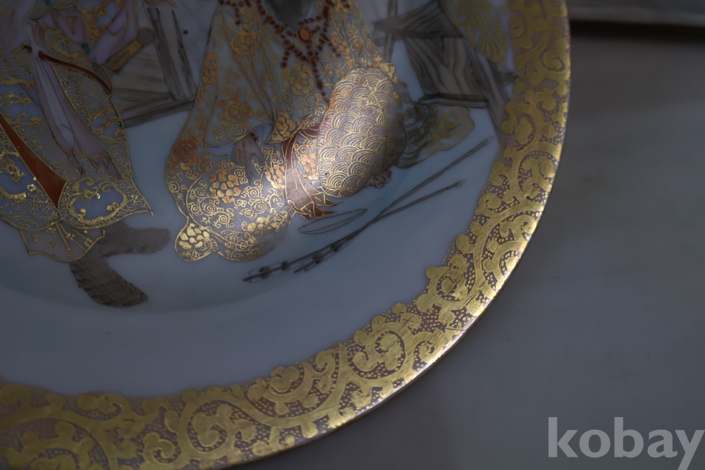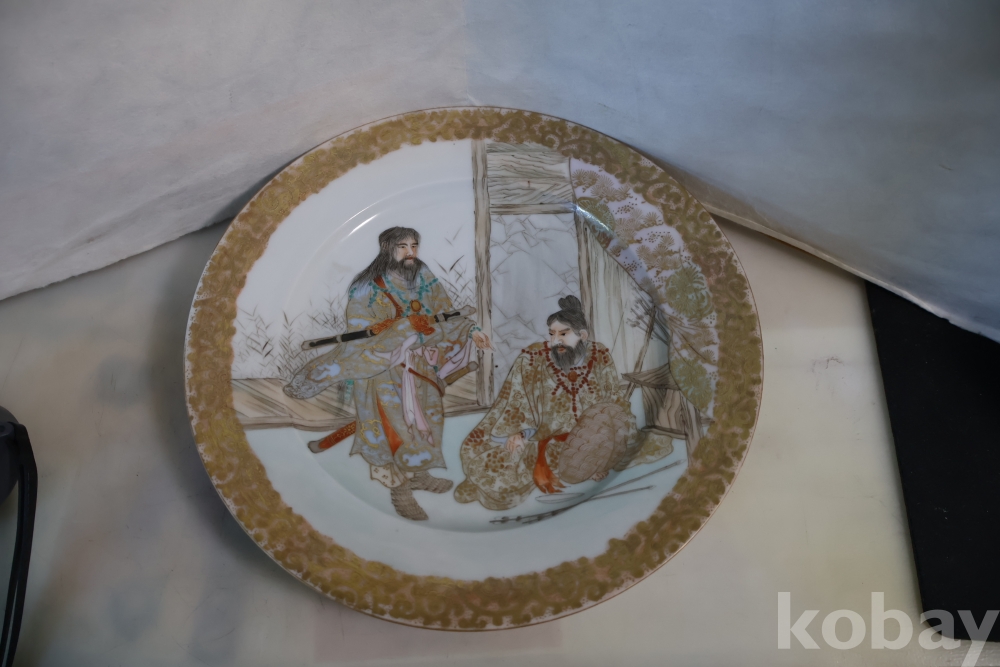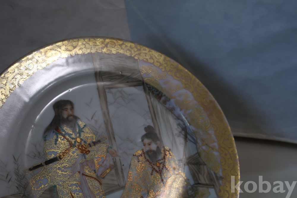 명치기의 구미 유럽 수출 도자기 접시 임니다 사무라이 칼을 주제?로한 황금 접시 임니다 섬세 정교 도공의 혼을 가진 명품 임니다