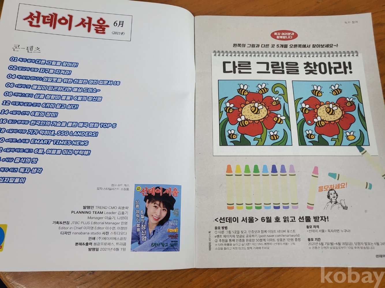 1. 선데이 서울 2021년 6월호, 이마트, 2021년, 28쪽, 월간, 비매품, 이마트 소식지, 표지 모델(배우 장신영), 상태 상, 사진 참조
