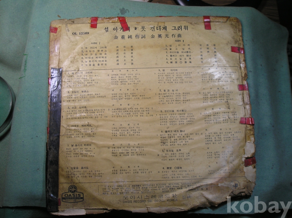 | 자켓상태 | G : 눈에 띄는 손상, 테이프, 필기 존재 | 음반상태 | EX : 재생에 영향 없는 가벼운 기스 존재 | 발매정보 | 알수없음 | 가사지여부 | 유 |