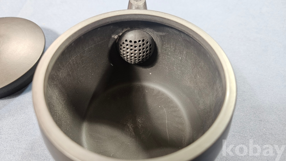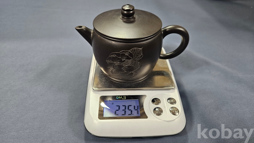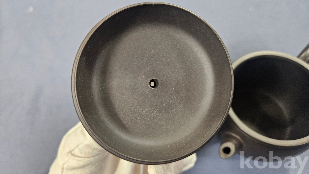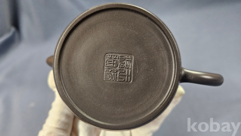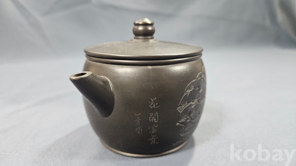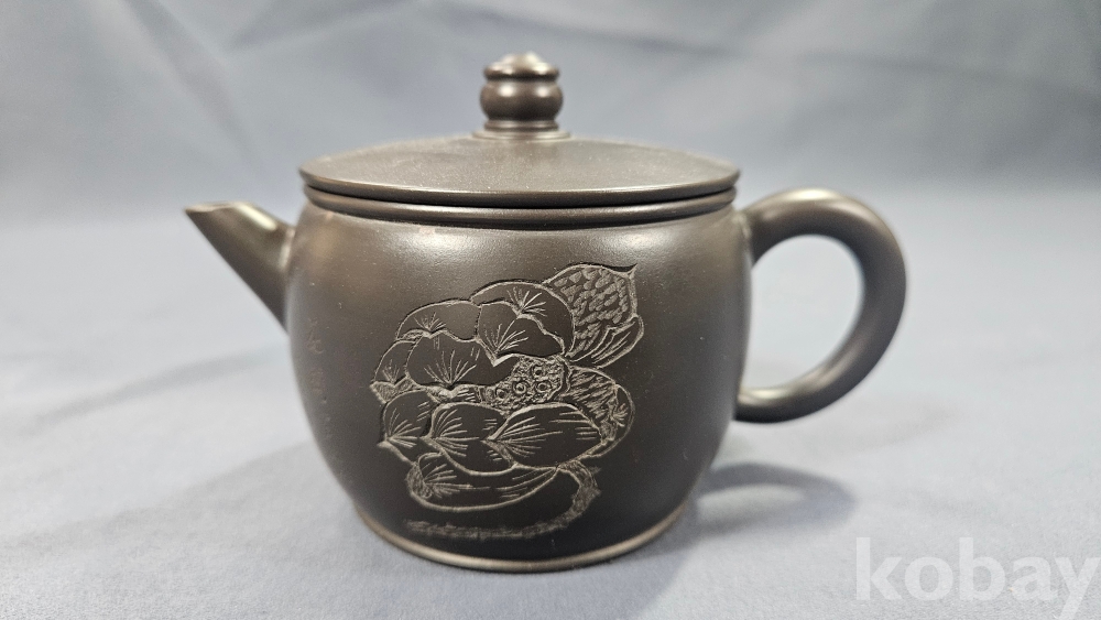 연꽃문양이 음각으로 조각되어 있는 자사주전자 입니다.