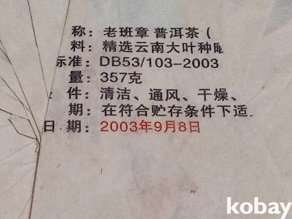"보이 숙차"로, 무게는 357g입니다.