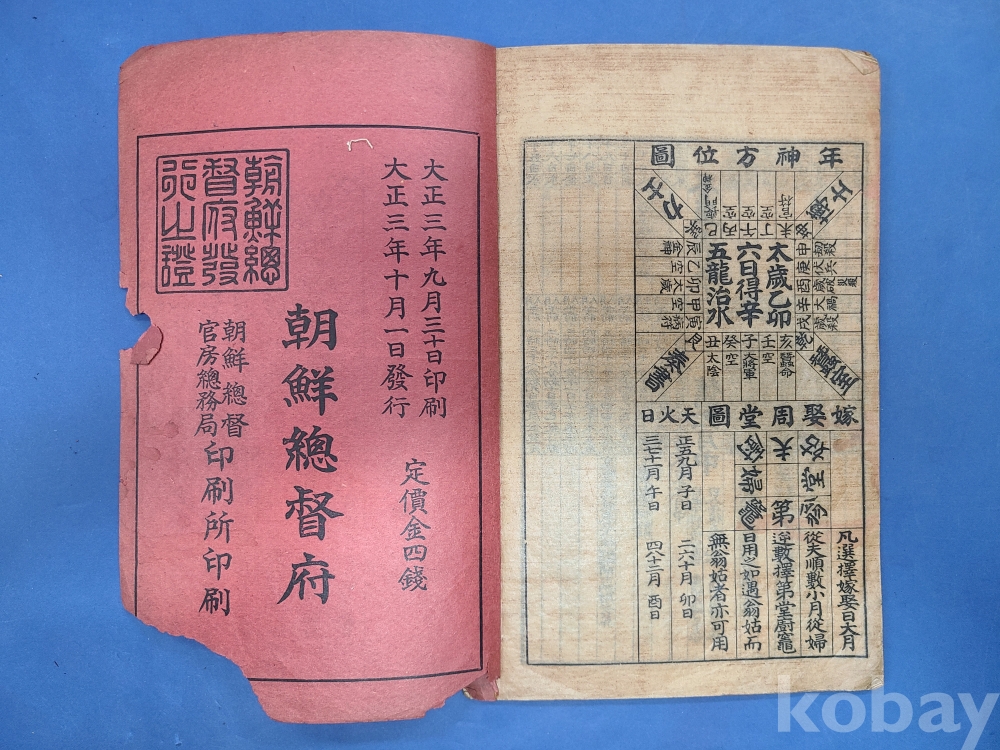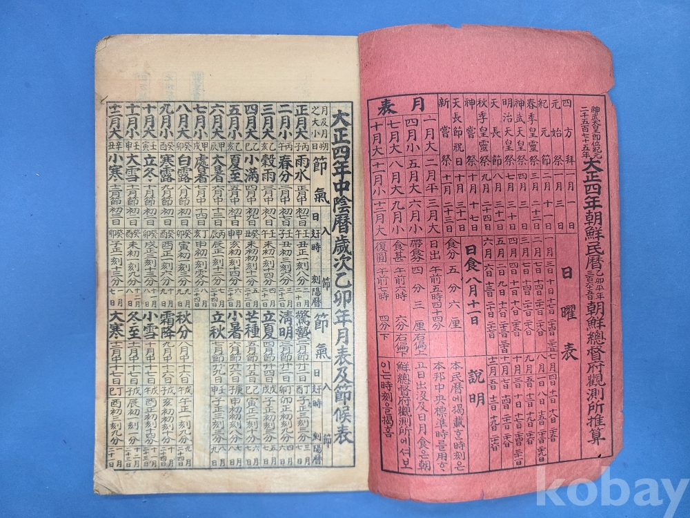 朝鮮總督府編製 대정4년 朝鮮民曆/뒷표지 일부 탈락