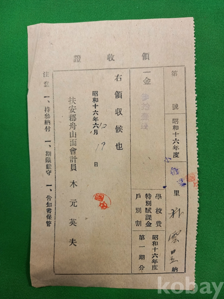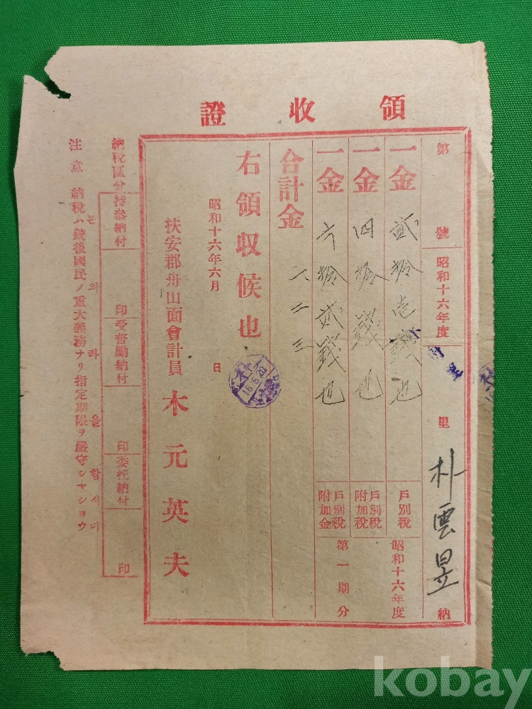 기타 국민개병(國民皆兵) 제도 하의 여러 명목의 부과금이 포함된 것으로 보이며, 이는 당시 일본 제국주의의 경제적 수탈 방식을 보여주는 사료입니다.