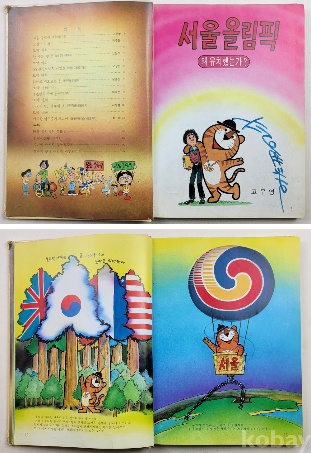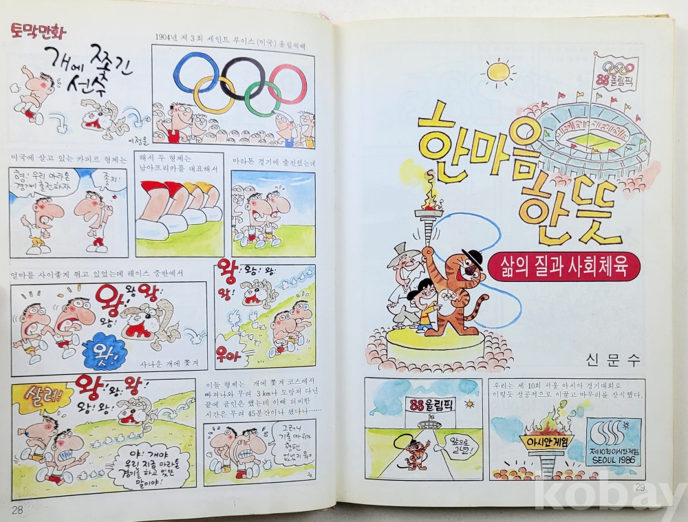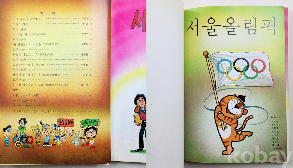 물 품 명 | 서울올림픽 / 고우영,박수동,신문수,이정문,오성섭,윤승운,지성훈,허어 / 올림픽기념유명작가모음집 / 1986년 초판 / 정경연구소 |